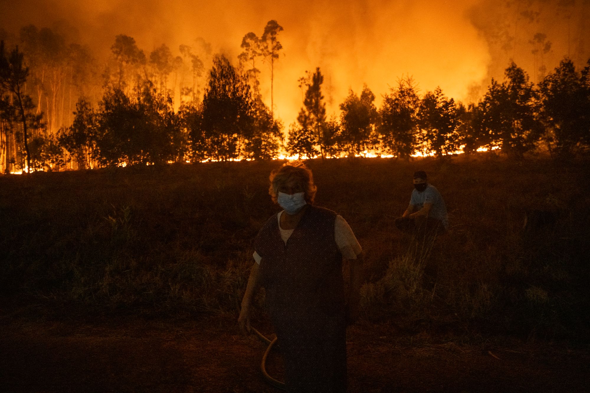 People stand watching the progression of a wildfire at Veiga village in Agueda, Aveiro, Portugal on September 17, 2024. (Photo by Patrícia de Melo Moreira/AFP Photo)