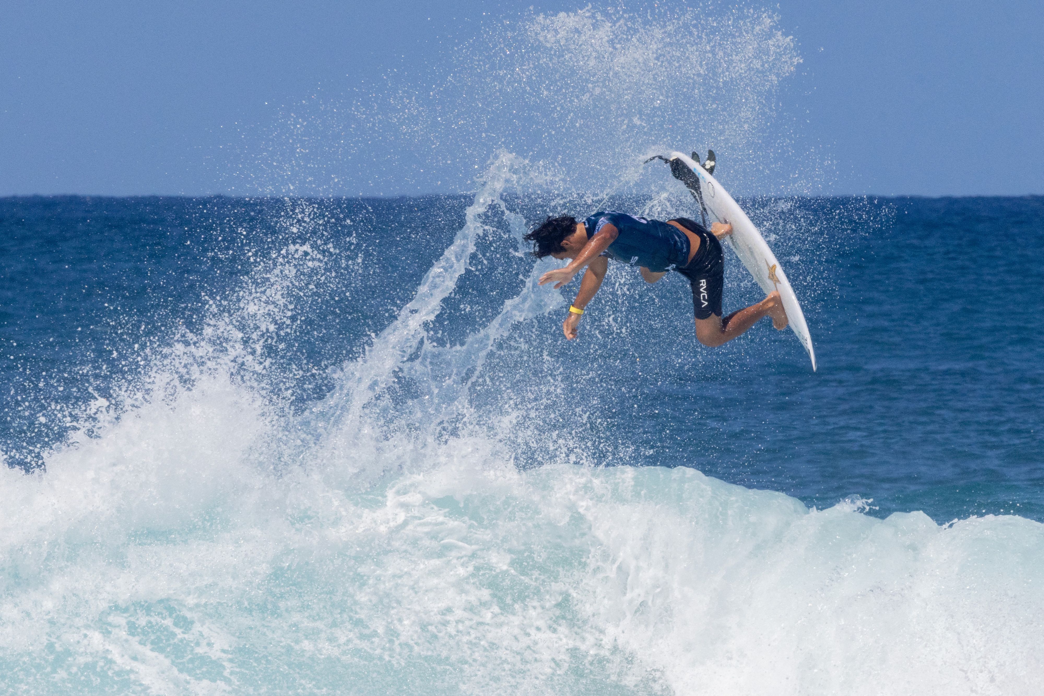 Hawaii's Barron Mamiya competes to win the men's event of 2025 Lexus Pipe Pro at Pipeline on the north shore of Oahu on February 8, 2025. Mamiya won the event for the second year in a row. (Photo by Brian Bielmann/AFP Photo)
