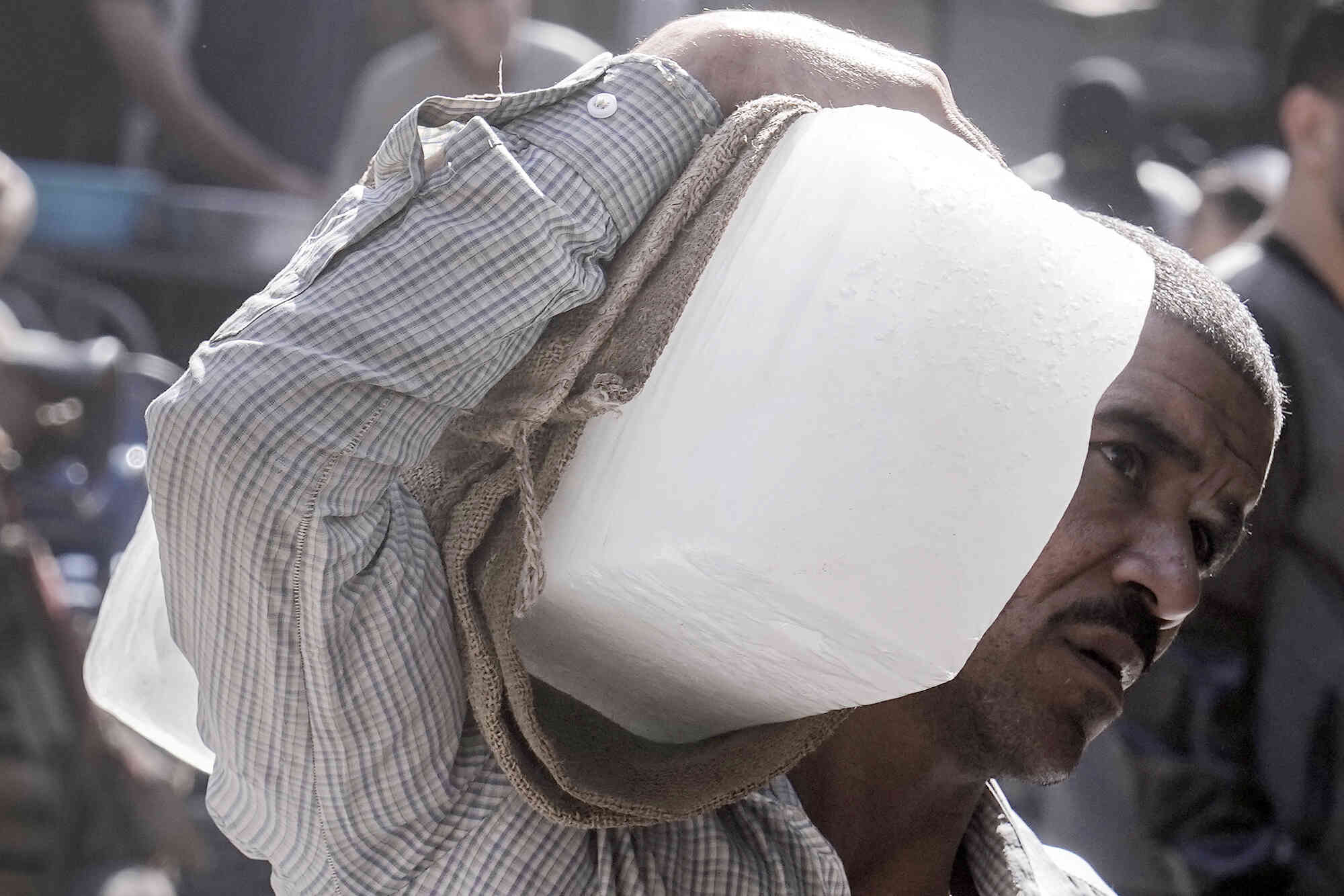 A worker carries an ice block at a popular market in Cairo, Egypt, Tuesday, November 5, 2024. (Photo by Amr Nabil/AP Photo)
