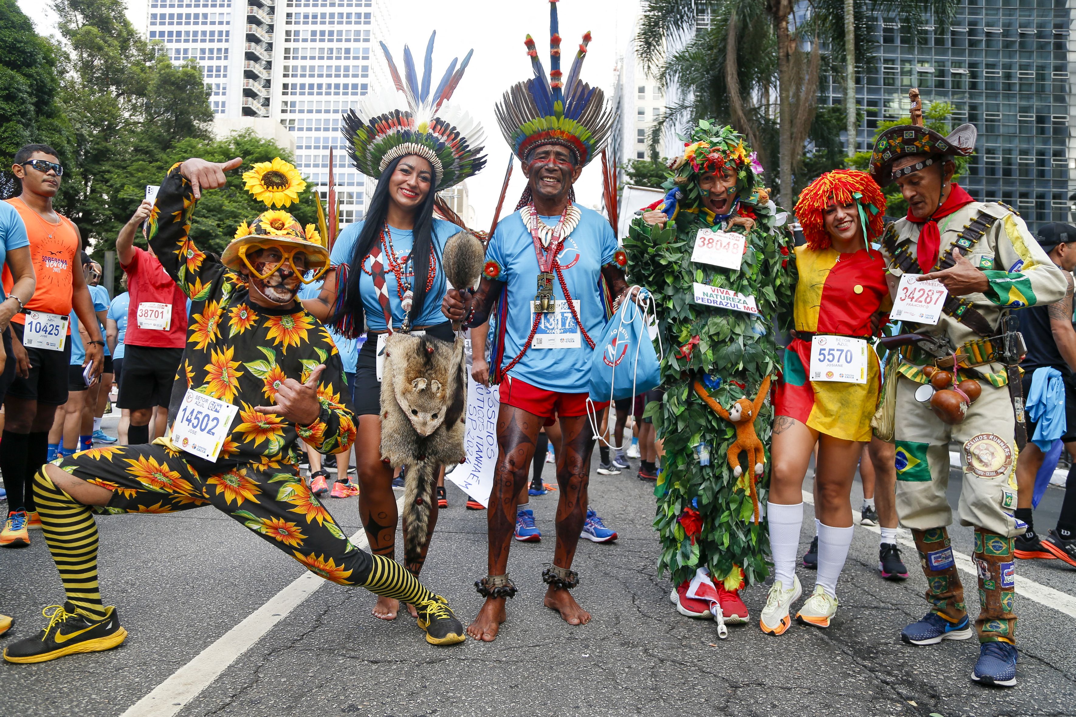 Disguised runners pose for a picture before the 98th 15-km Sao Silvestre international race in Sao Paulo, Brazil, on December 31, 2023. (Photo by Miguel Schincariol/AFP Photo)