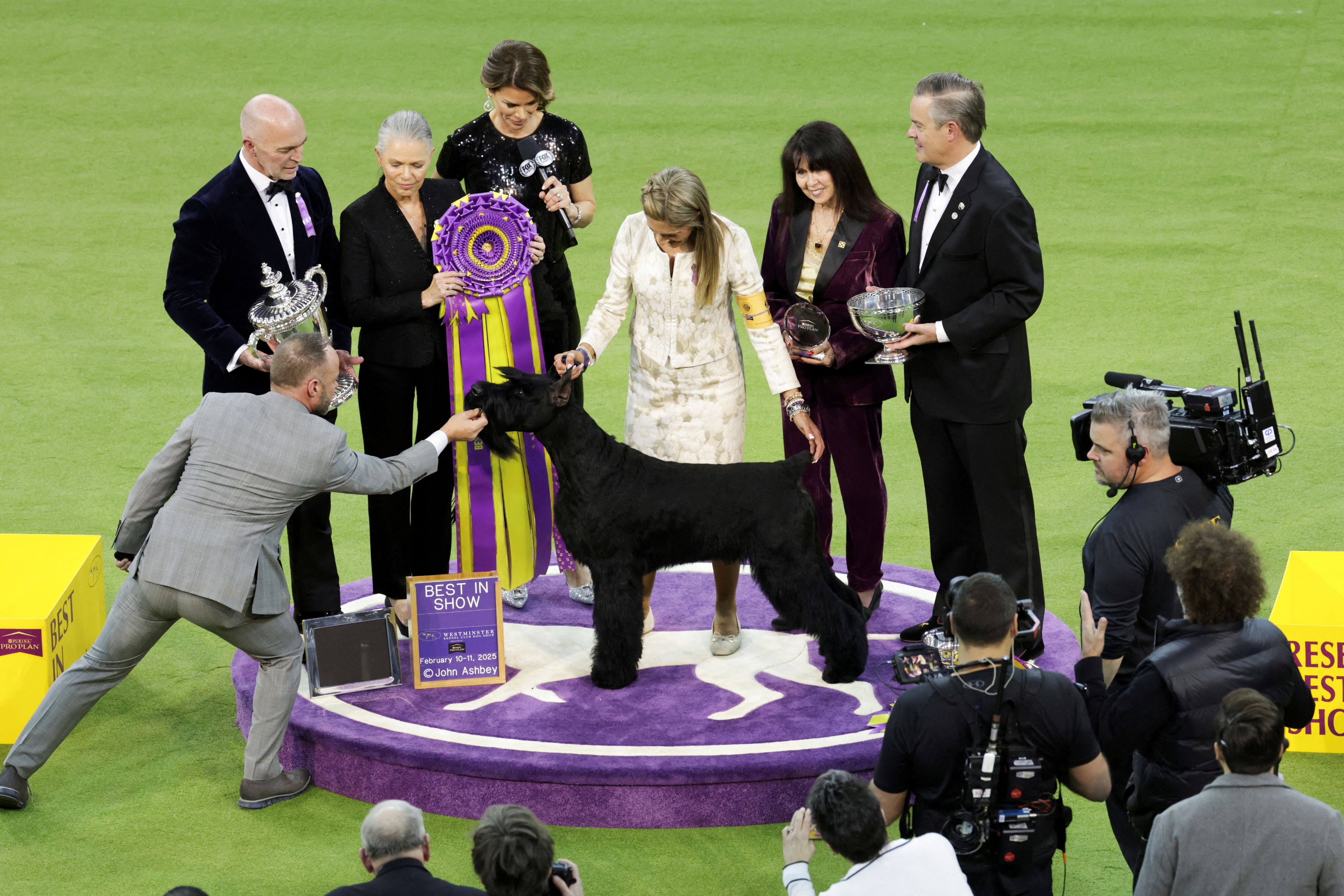 Monty, a Giant Schnauzer, wins the Best in Show competition during the 149th Annual Westminster Kennel Club Dog Show at Madison Square Garden in New York City, New York, U.S., February 11, 2025. (Photo by Jeenah Moon/Reuters)