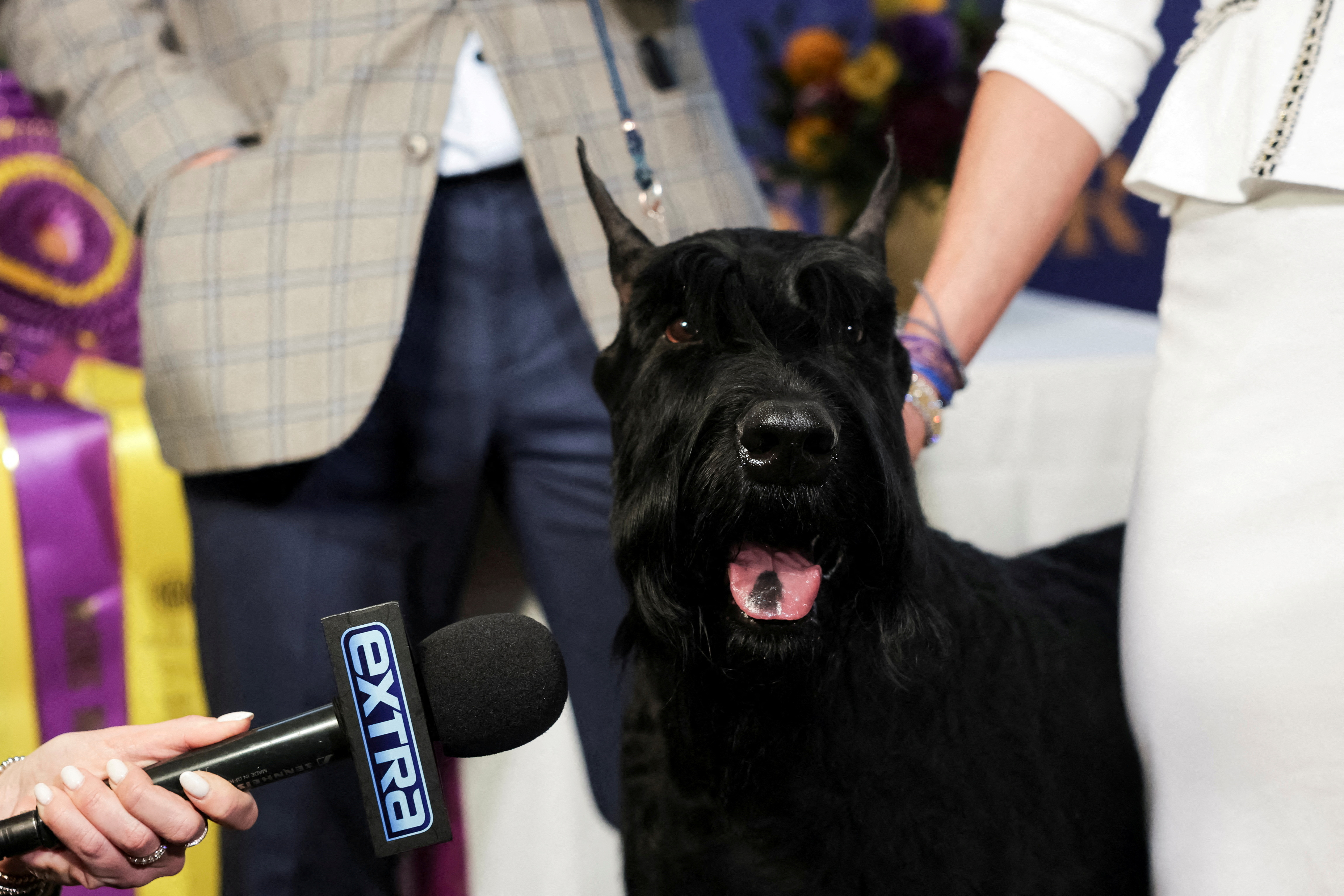 Monty, a Giant Schnauzer, the winner of Best in Show at the 149th Westminster Kennel Club Dog Show, poses for photographs at Bar Boulud in New York City, on February 12, 2025. (Photo by Jeenah Moon/Reuters)