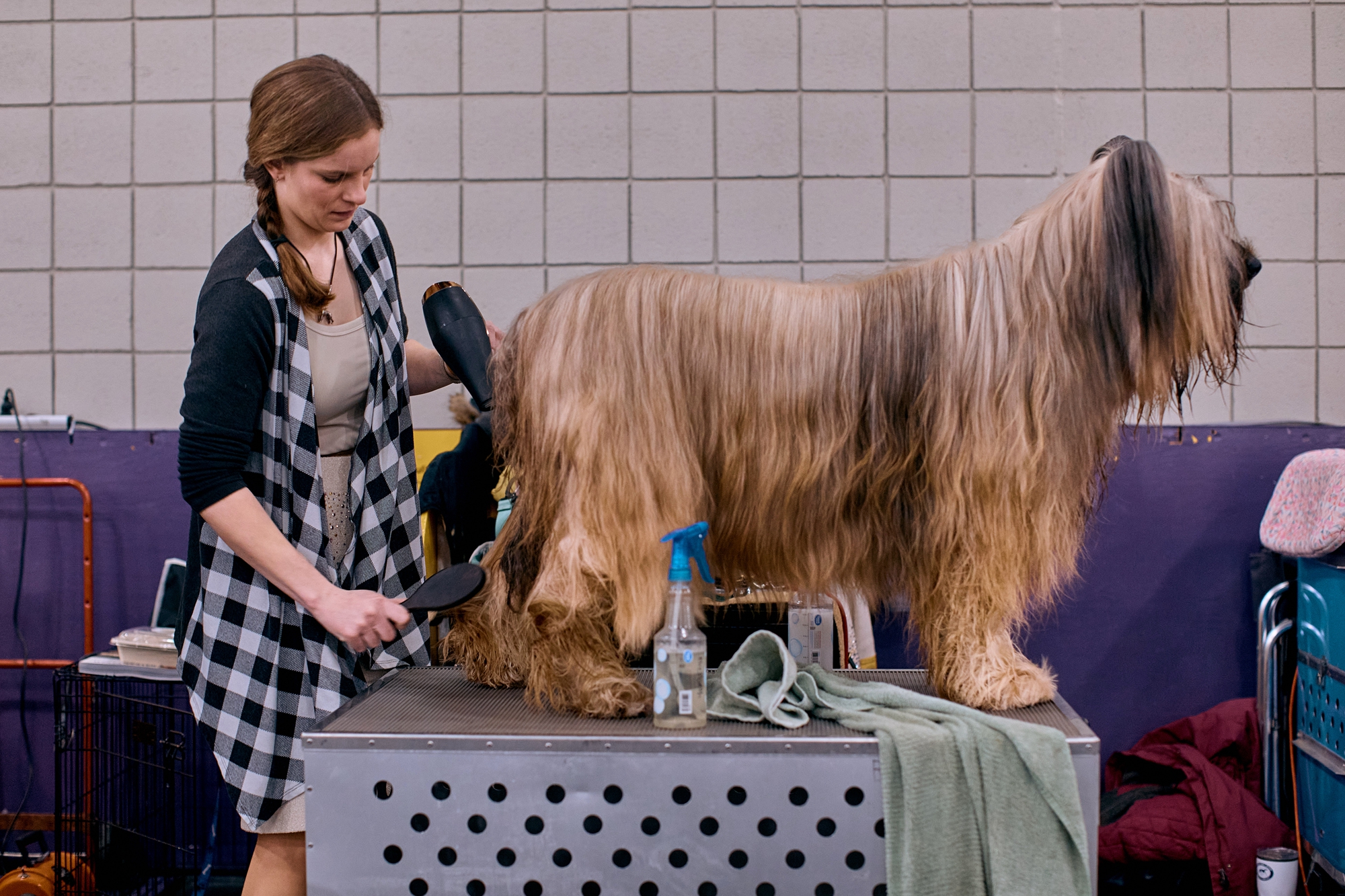 A handler grooms her Briard during the 149th Annual Westminster Kennel Club Dog Show at Jacob K. Javits Convention Center on February 10, 2025 in New York City. (Photo by Andres Kudacki/Getty Images)