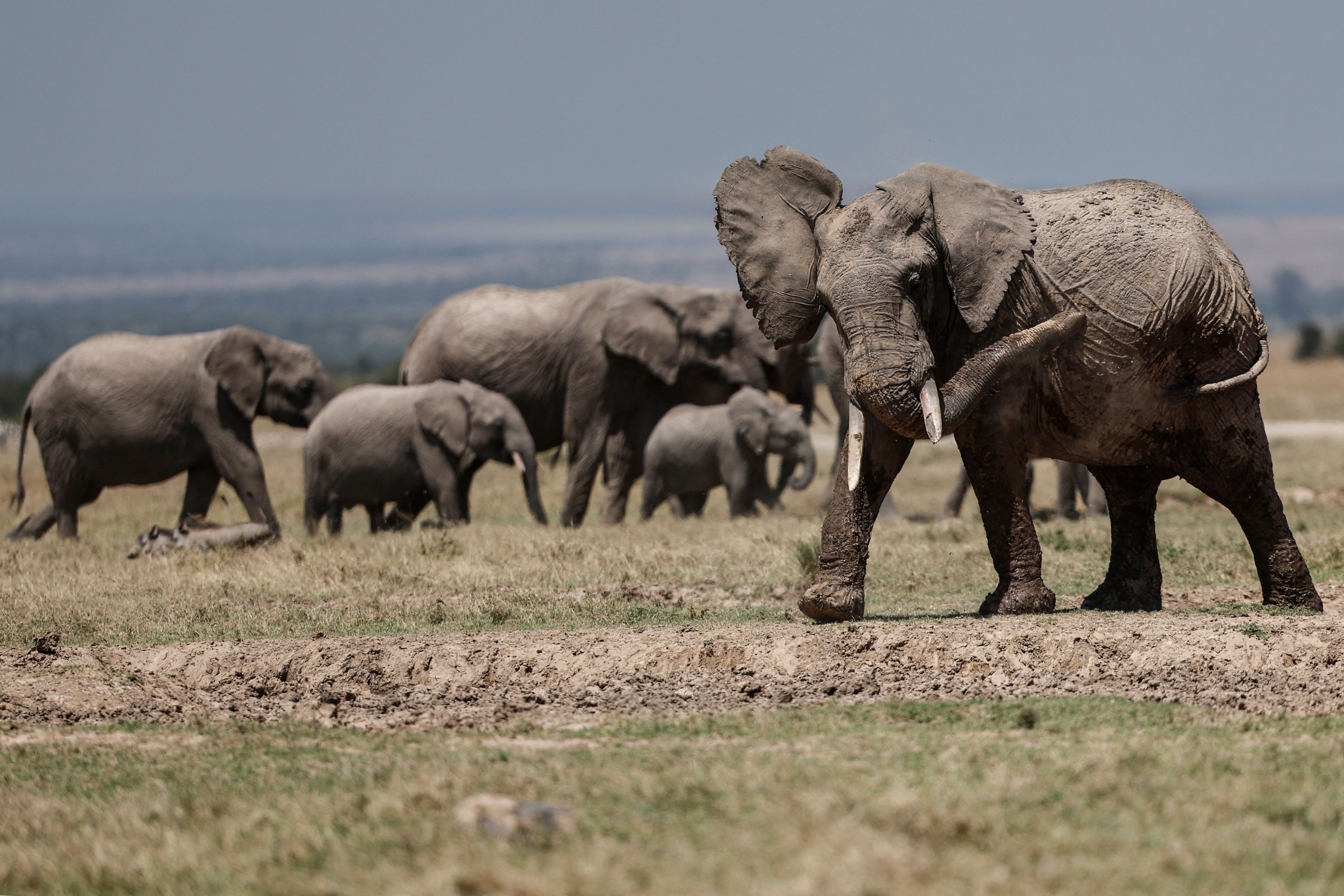 A juvenile elephant playfully charges at visitors inside the Ol Pejeta conservancy, Laikipia county, on February 6, 2025. (Photo by Simon Maina/AFP Photo)