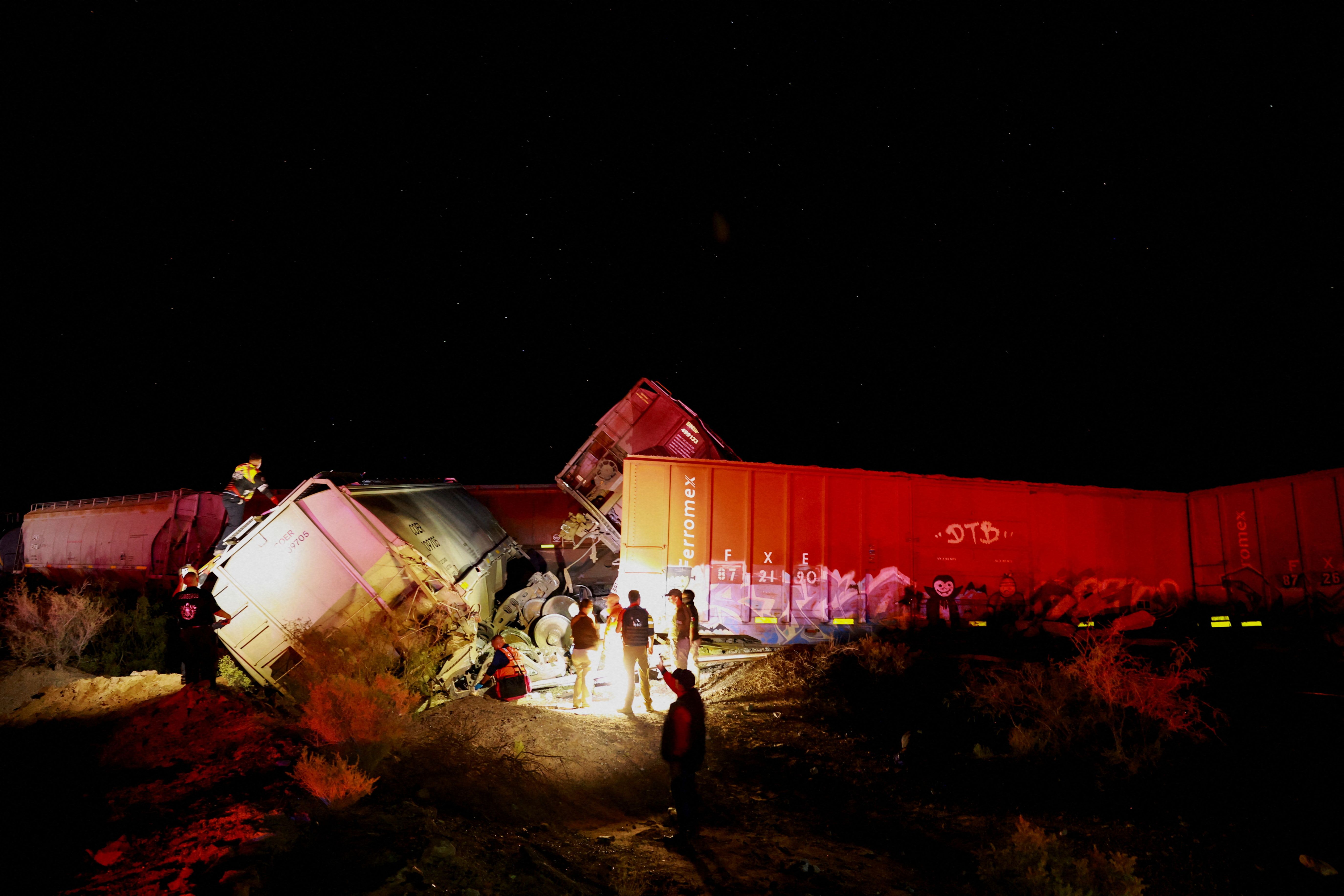 Paramedics and authorities work at the scene where a train derailed, resulting in several injured migrants, on the outskirts of Ciudad Juarez, Mexico on September 4, 2024. (Photo by Jose Luis Gonzalez/Reuters)