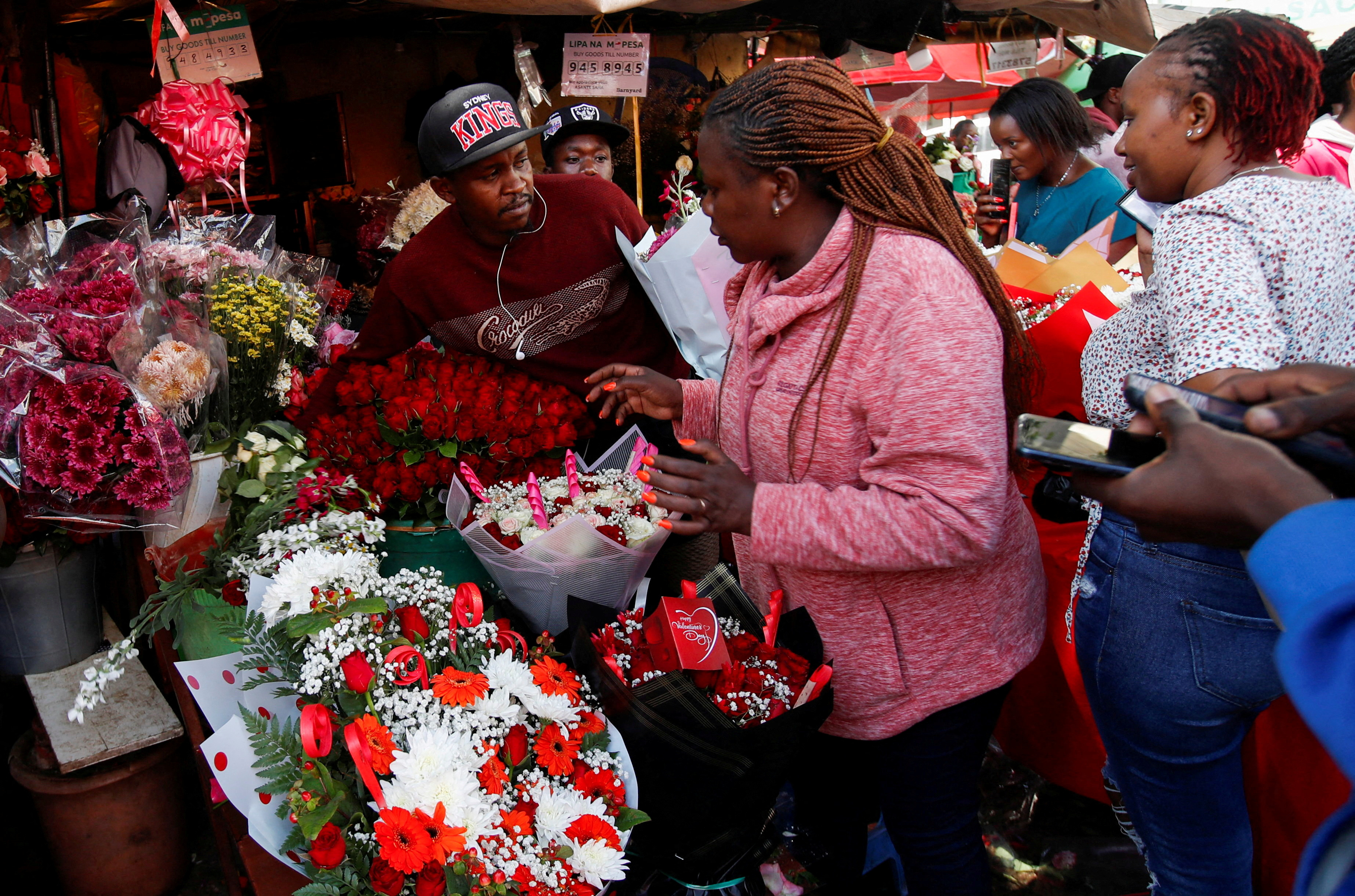 Florists display bouquets for sale to mark Valentine's Day celebrations in Nairobi, Kenya, on February 14, 2025. (Photo by Monicah Mwangi/Reuters)