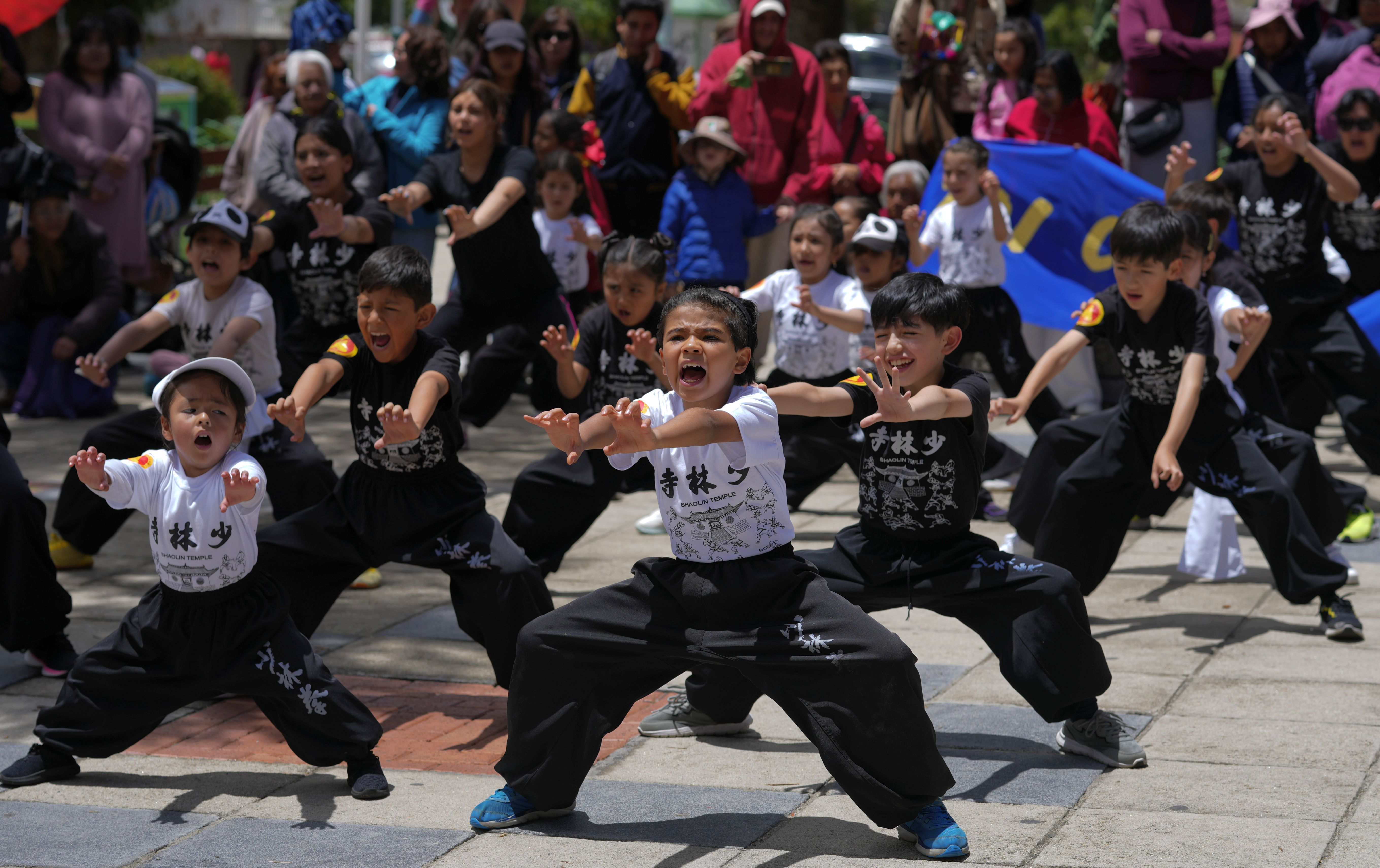 Youths perform martial arts during during a Chinese Lunar New Year celebration in La Paz, Bolivia, Sunday, January 26, 2025. (Photo by Juan Karita/AP Photo)
