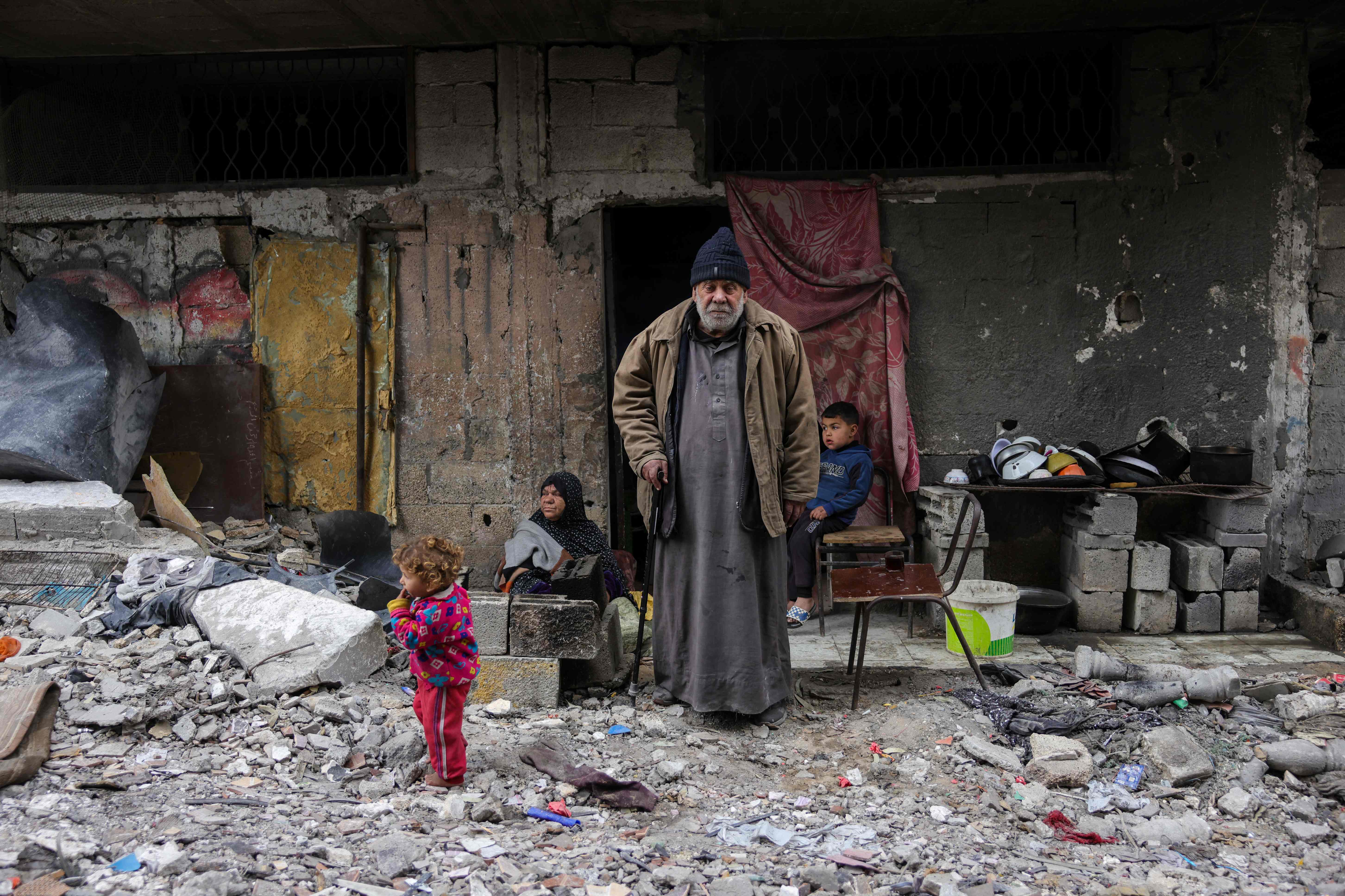 Talal Al-Assali, 64, poses in front of his destroyed home in Jabalia, northern Gaza Strip, on February 9, 2025. (Photo by Bashar Taleb/AFP Photo)
