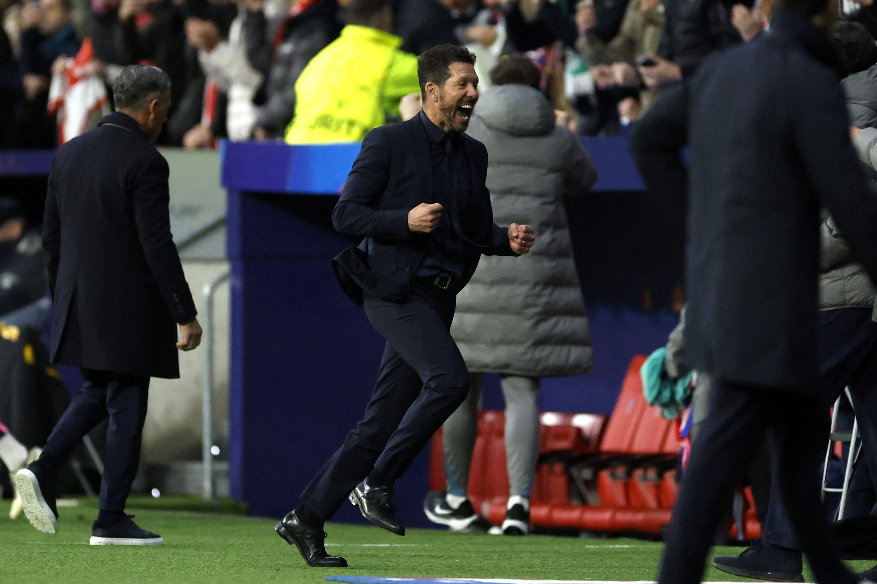 Atletico Madrid's Argentine coach Diego Simeone celebrates at the end of the UEFA Champions League, league phase football match between Club Atletico de Madrid and Bayer Leverkusen at the Metropolitano stadium in Madrid on January 21, 2025. (Photo by Oscar del Pozo/AFP Photo)