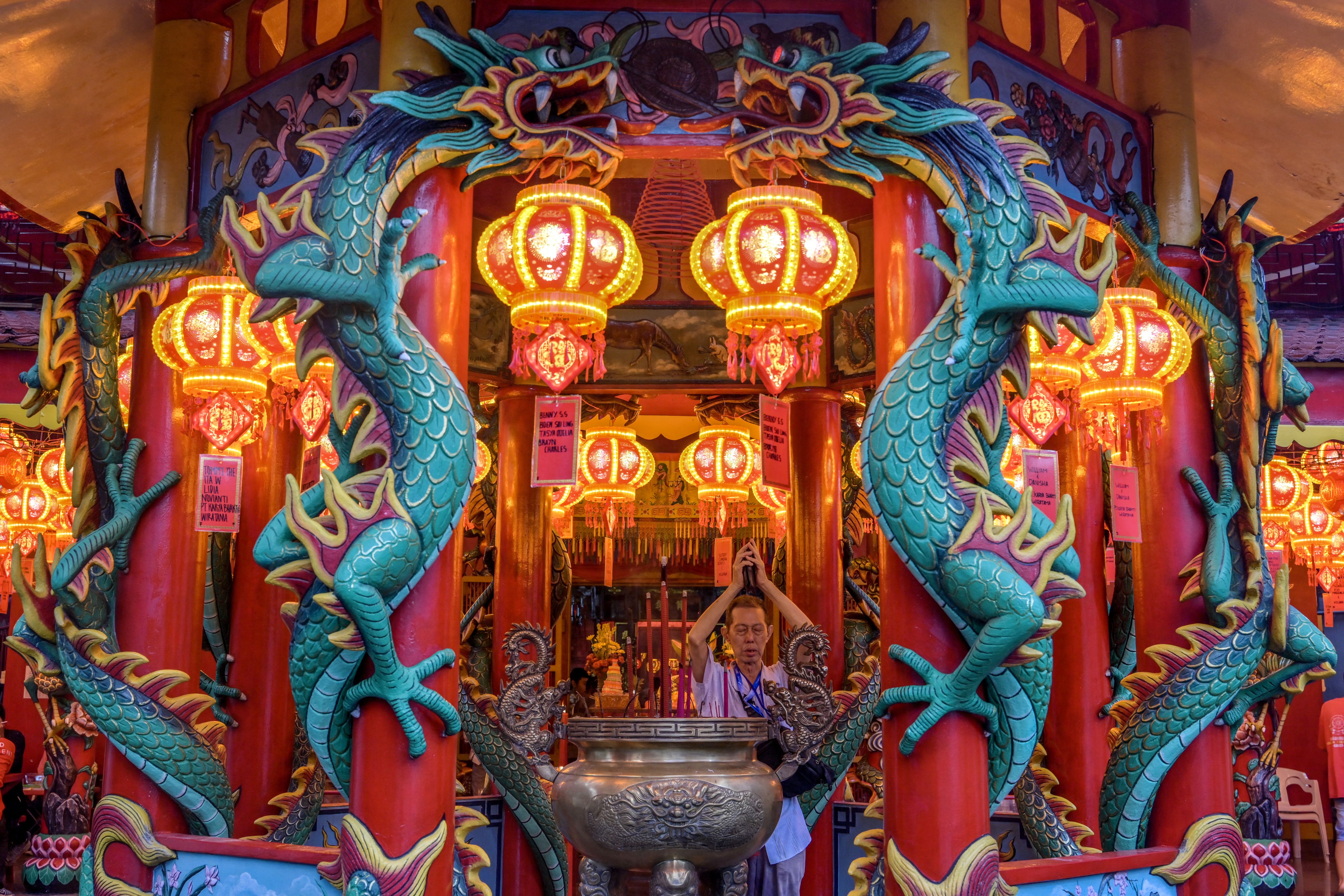 A man offers prayers at the Amurva Bhumi Vihara temple on the eve of the Lunar New Year of the Snake in Jakarta on January 28, 2025. (Photo by Bay Ismoyo/AFP Photo)