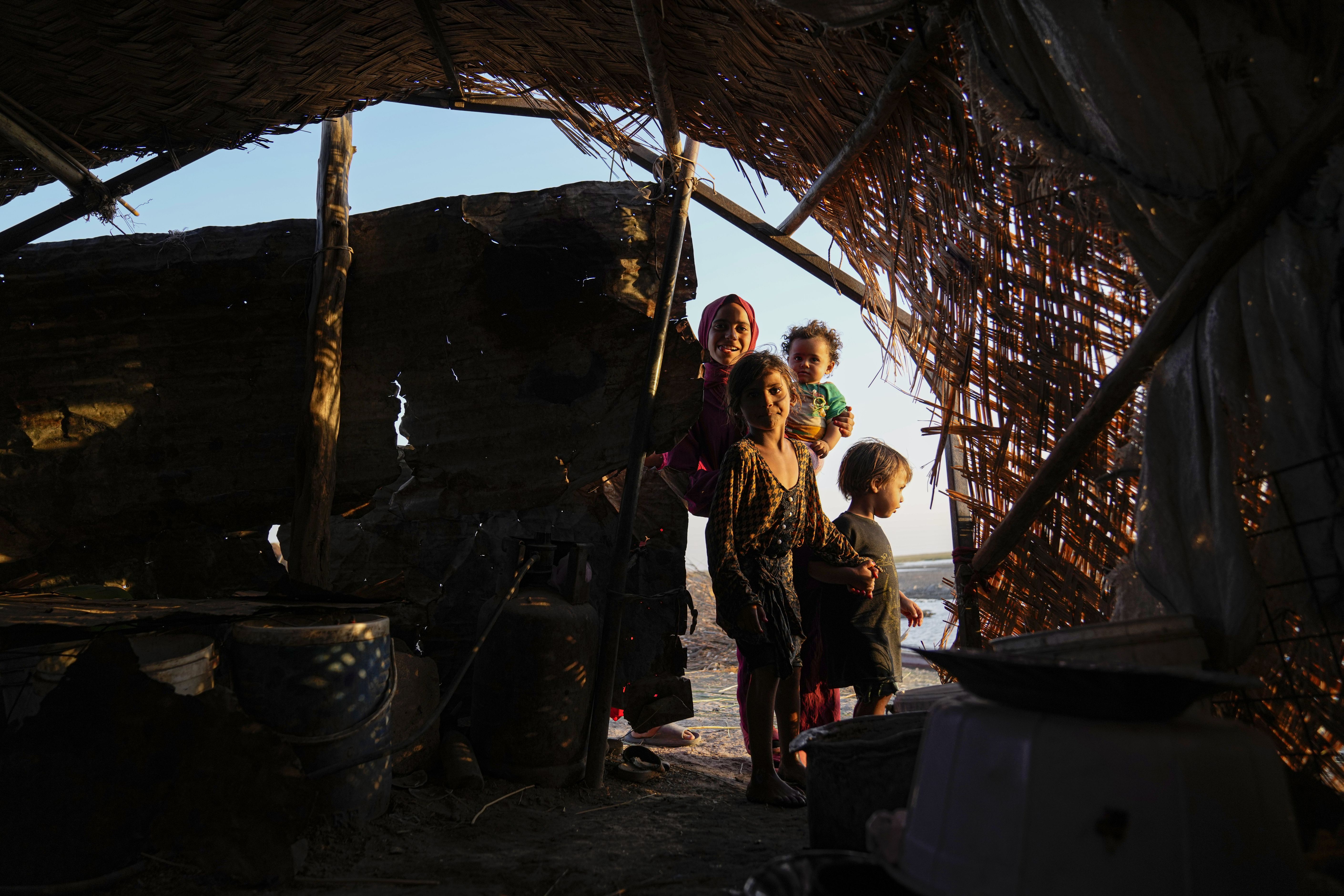 Children stand in front of their traditional reed house of the Chibayish marshes in Nasiriyah, Iraq, Friday, September 6. 2024. Deep within Iraq's celebrated marsh lands, conservationists are sounding alarm bells and issuing a stark warning: Without quick action, the UNESCO protected site could all but wither away. (Phoot by Hadi Mizban/AP Photo)