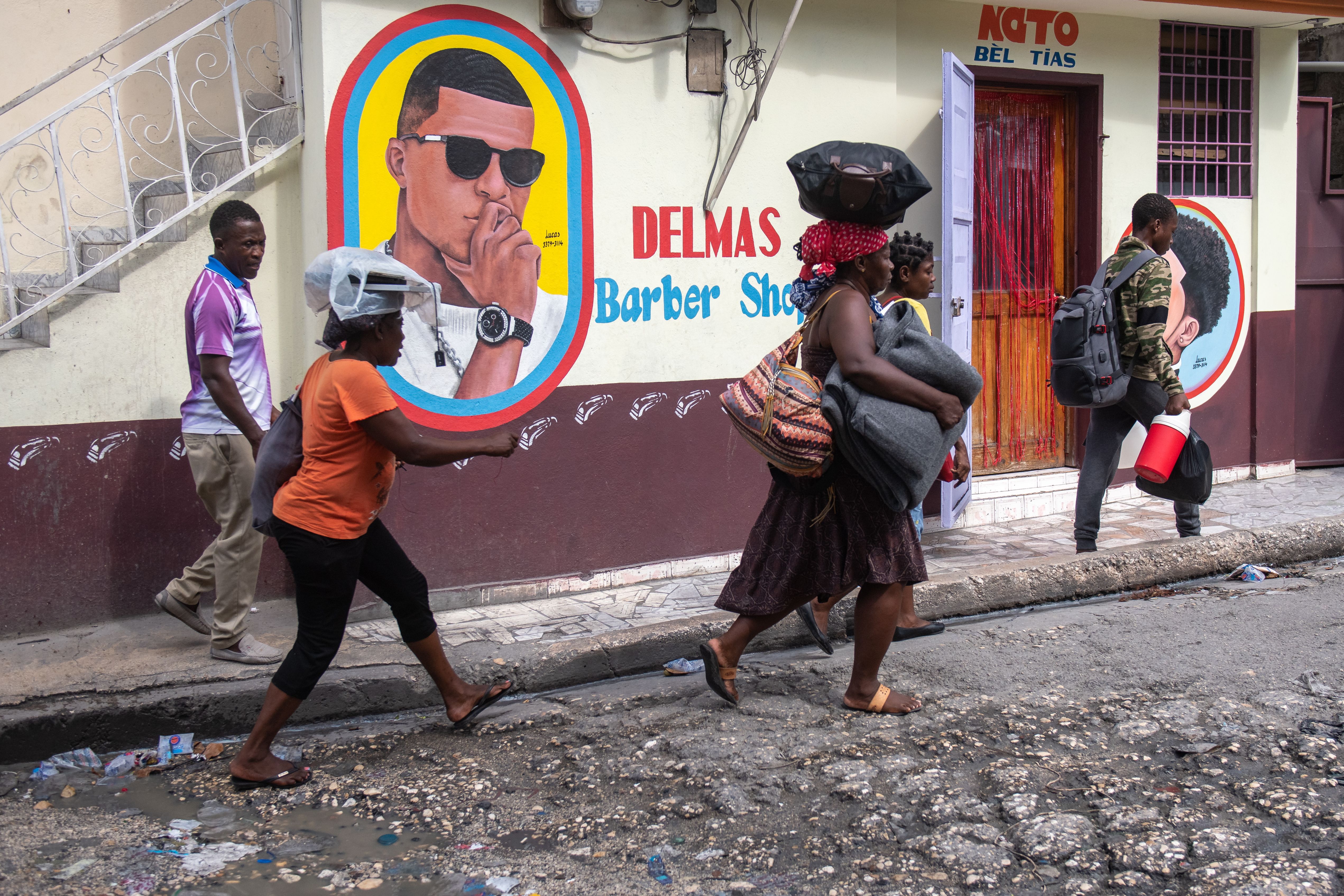 People transporting their belongings in Port-au-Prince, Haiti, 14 November 2024. Thousands of people living in the areas of Solino, Nazon and Christ-Roi, in the heart of Port-au-Prince, have fled their homes fleeing the advance of armed gangs into new territories, despite the presence of the Multinational Security Support Force, led by Kenya. (Photo by Johnson Sabin/EPA/EFE)