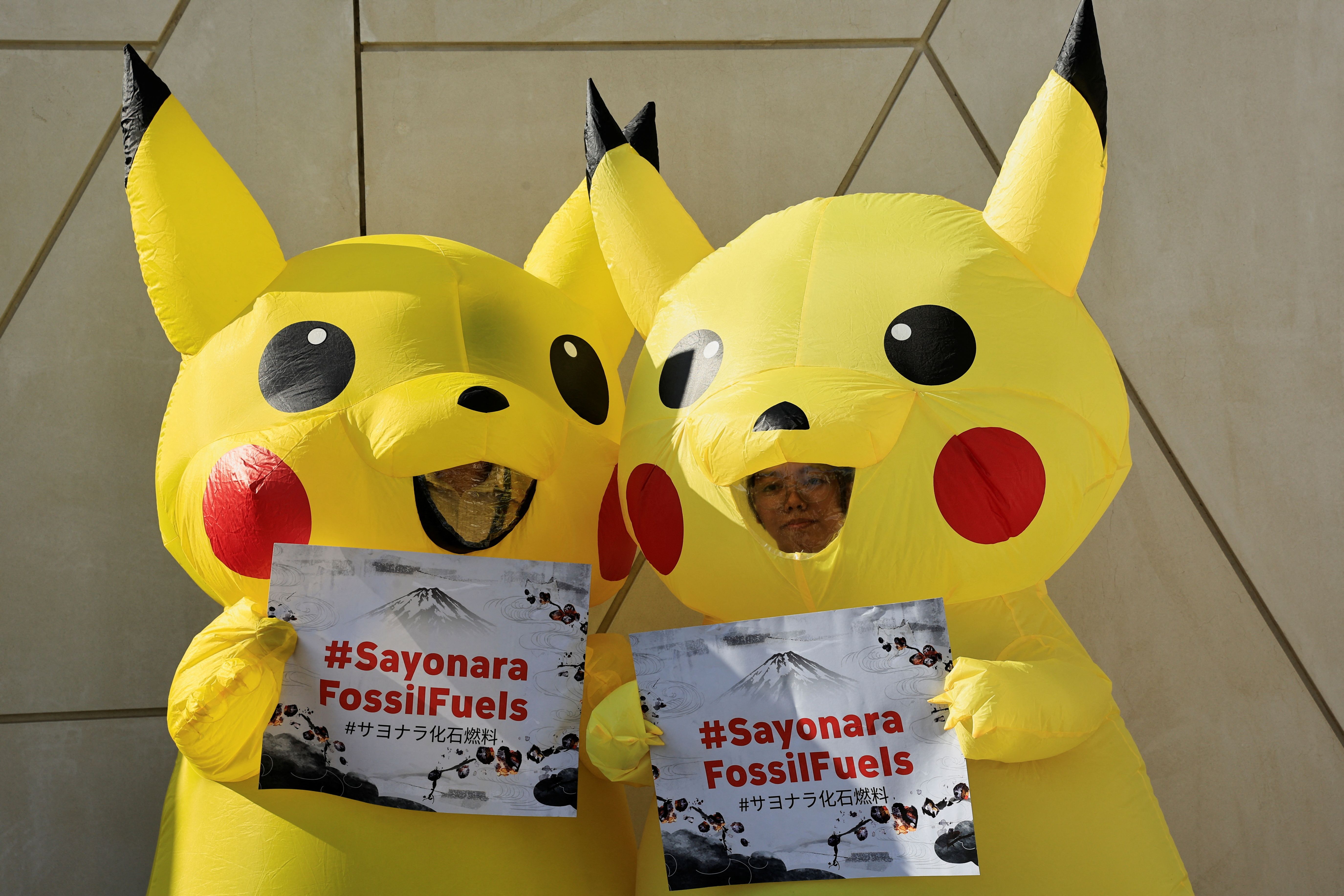 Activists dressed as Pikachu participate in a protest against fossil fuel, at the United Nations Climate Change Conference (COP28) in Dubai, United Arab Emirates on December 4, 2023. (Photo by Thaier Al Sudani/Reuters)