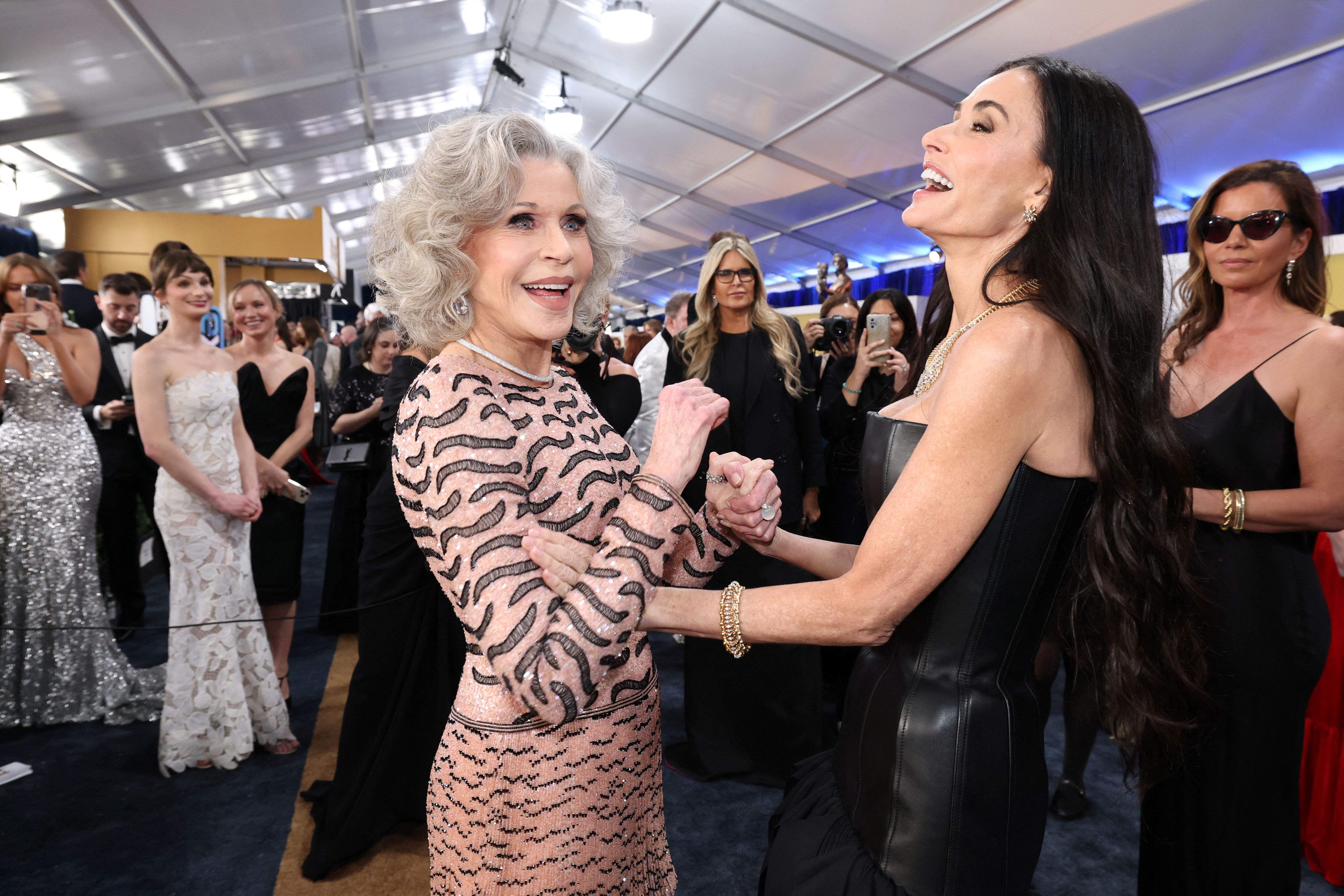 Jane Fonda, left, and Demi Moore arrive at the 31st annual Screen Actors Guild Awards on Sunday, Feb. 23, 2025, at the Shrine Auditorium in Los Angeles. Moore won the award for outstanding performance by a female actor in a leading role for her performance in The Substance. (Photo by Mario Anzuoni/Reuters)