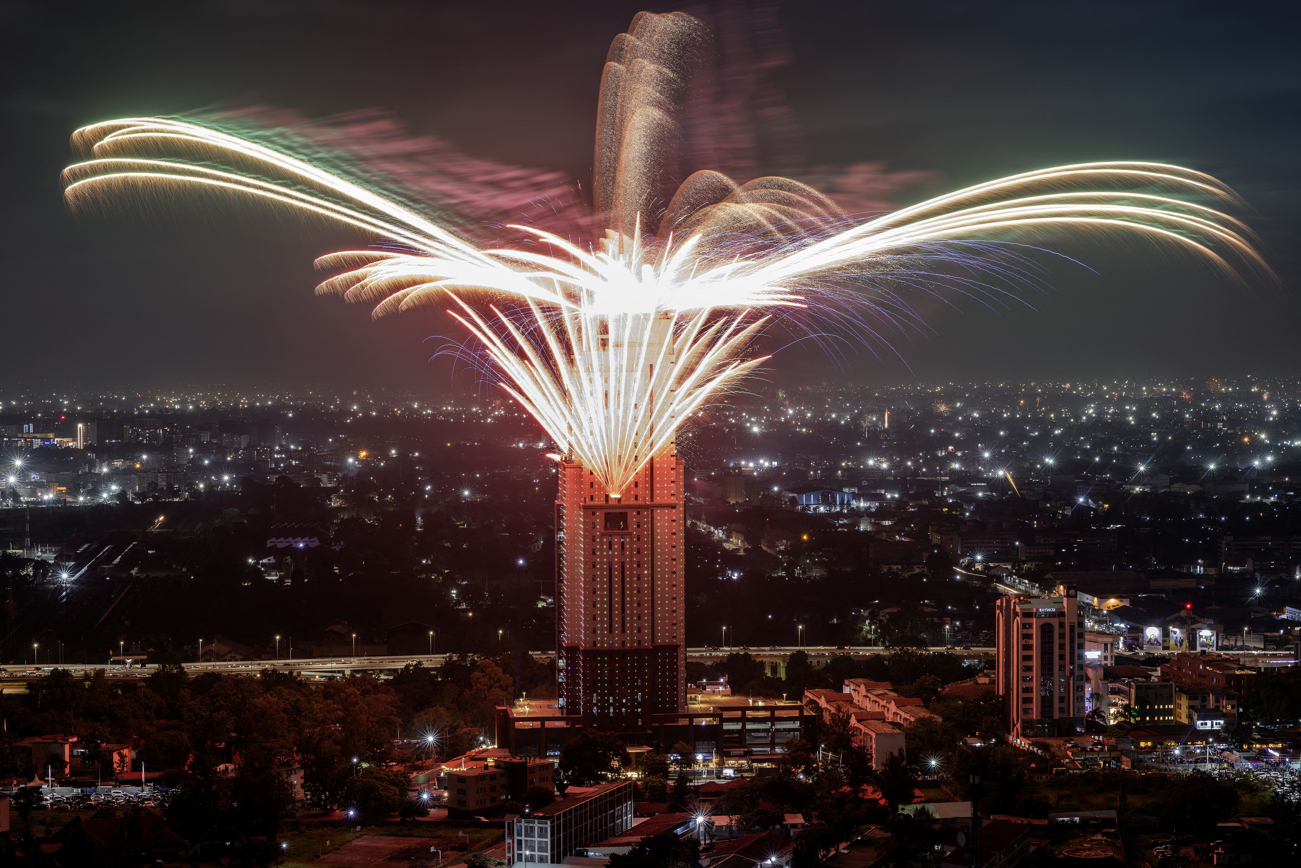 Fireworks explode over the city skyline during the New Year's Eve celebrations in Nairobi on January 1, 2024. (Photo by Luis Tato/AFP Photo)