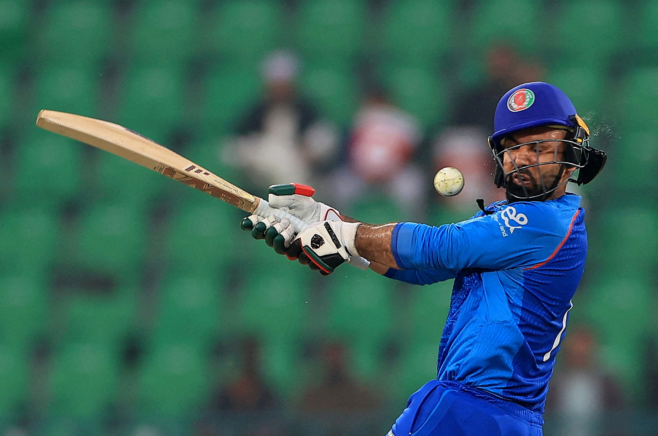 The Afghan cricketer Mohammad Nabi is hit on the helmet by England’s Jofra Archer during the ICC men’s Champions Trophy game in Lahore, Pakistan on February 26, 2025. (Photo by Akhtar Soomro/Reuters)