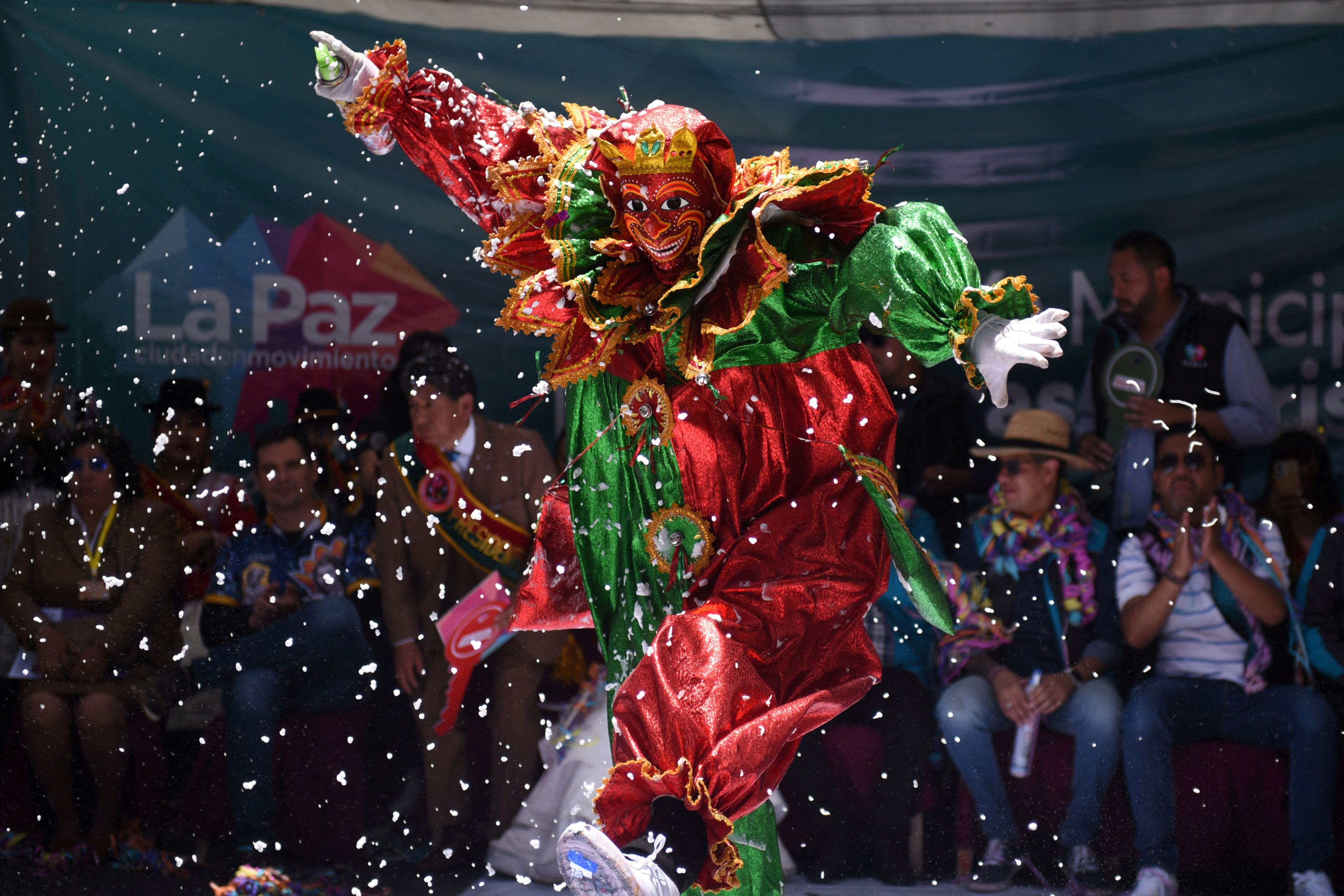A man dressed as “Pepino”, a carnival character, dances as part of a ceremony marking the beginning of the carnival in Bolivia, in La Paz, Bolivia on January 21, 2024. (Photo by Claudia Morales/Reuters)