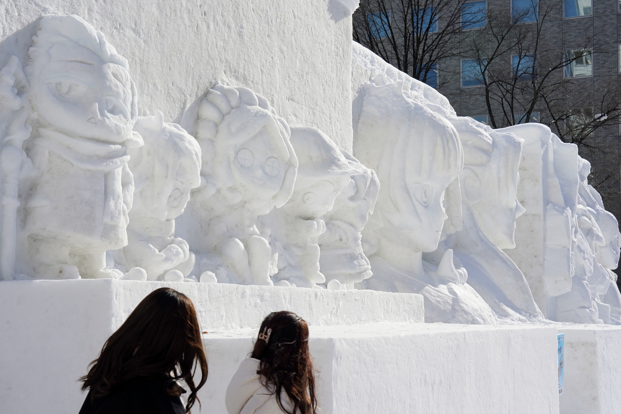 Snow sculptures are displayed during the 75th Sapporo Snow Festival on February 04, 2025 in Sapporo, Japan. The Sapporo Snow Festival, held annually in early February, is one of Japan's most iconic winter events, attracting over two million visitors to marvel at its stunning snow and ice sculptures across three main venues: Odori Park, Susukino, and Tsudome. The festival, which began in 1950 with six snow sculptures created by local students, has grown into a global spectacle featuring large-scale snow art, illuminated displays, and various winter activities. (Photo by Christopher Jue/Getty Images)