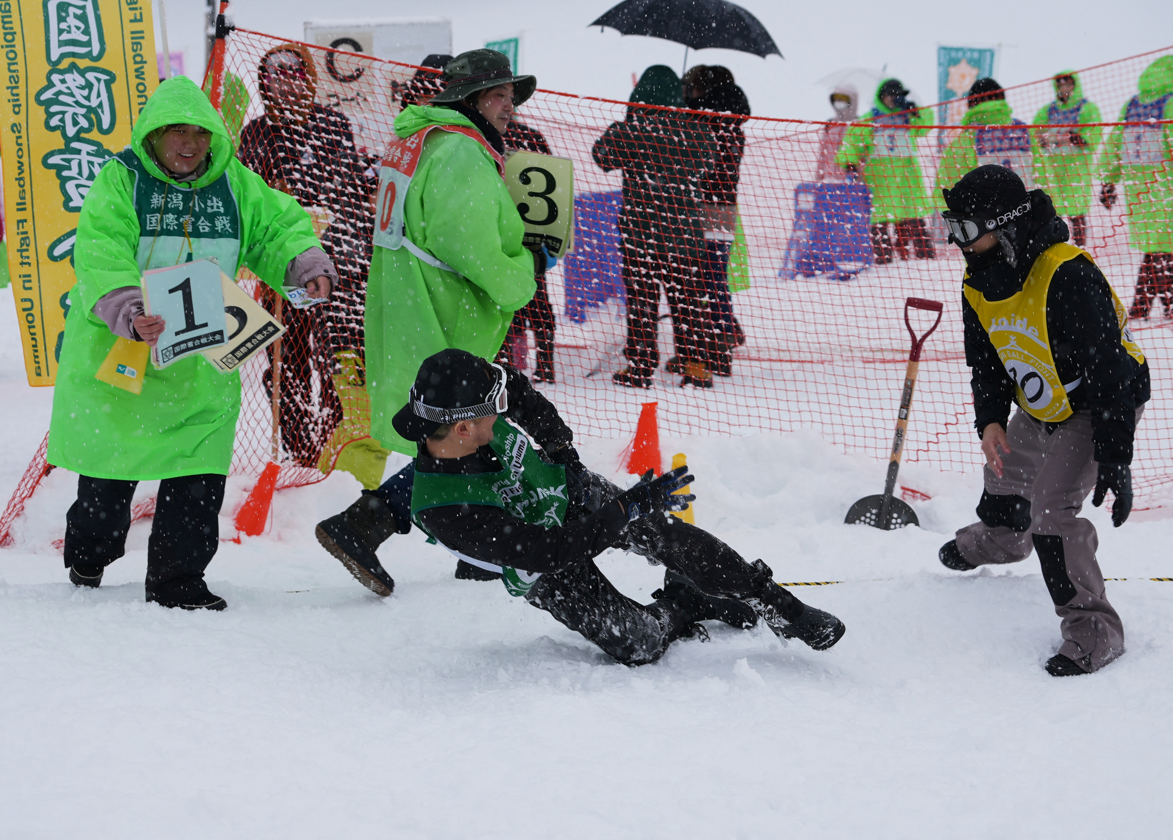 A man falls while throwing a snowball at the 35th Koide International Snowball Fight in Uonuma, Niigata Prefecture, Japan, on February 9, 2025. (Photo by Tom Bateman/Reuters)