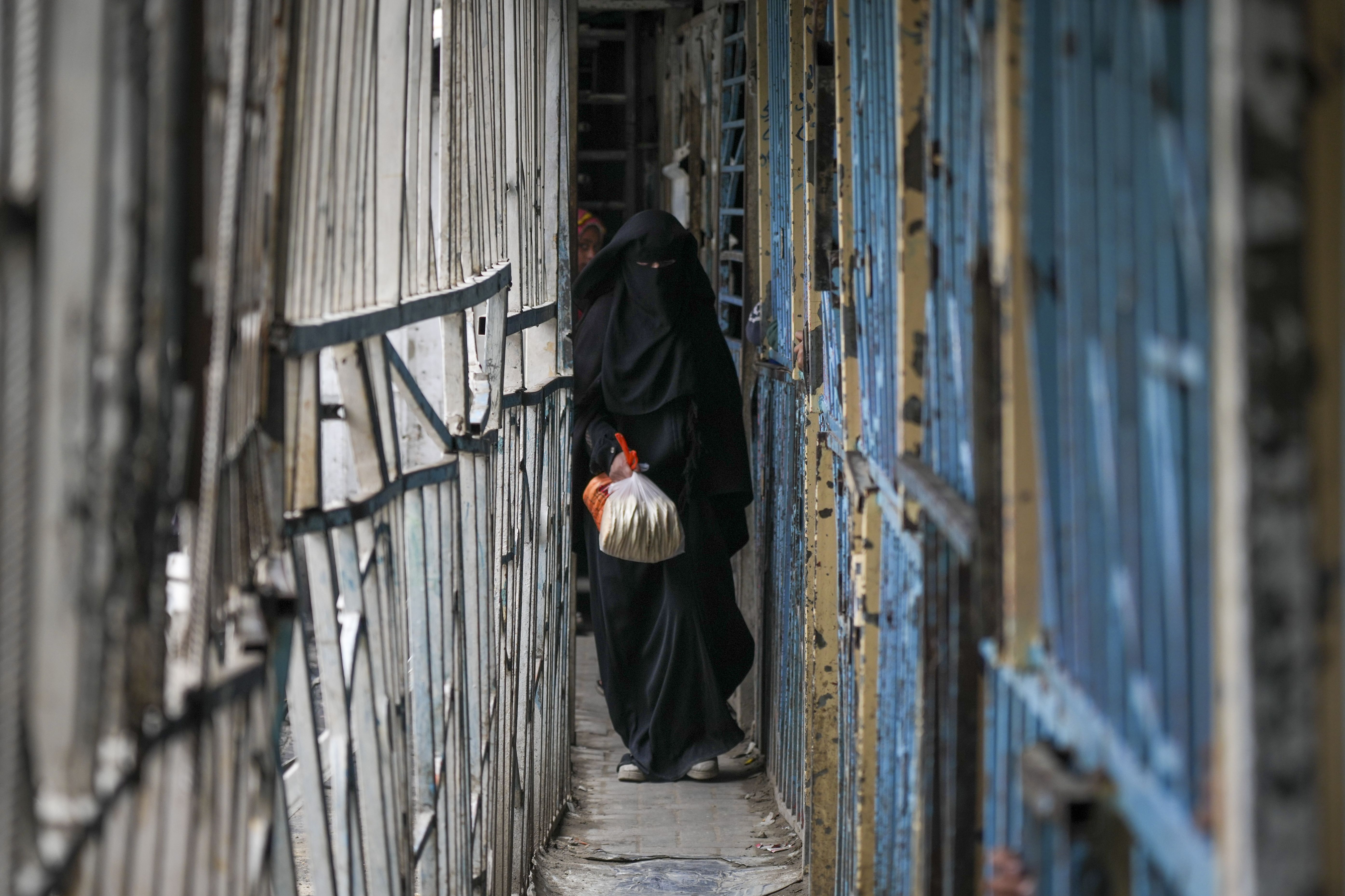 A Palestinian woman walks out of a bakery in Gaza City, Monday, February 24, 2025. (Photo by Abdel Kareem Hana/AP Photo)