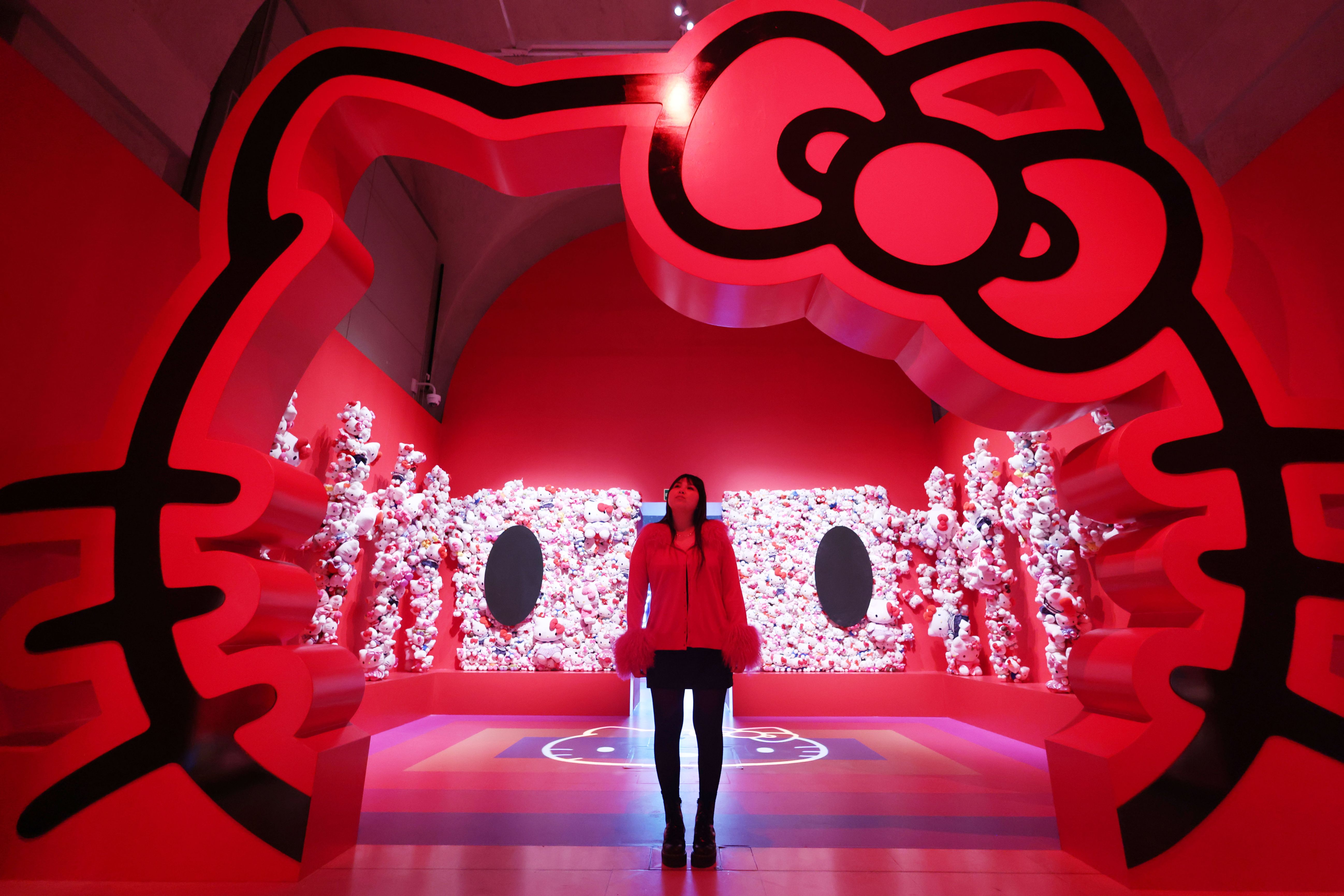 A gallery worker poses at the exhibition preview of CUTE at Somerset House in London, Britain, 24 January 2024. CUTE shows contemporary artwork and cultural phenomena such as music, fashion, toys, video games and social media to examine cute culture. The show runs at the Embankment Galleries at Somerset House from 25 January to 14 April 2024. (Photo by Neil Hall/EPA)