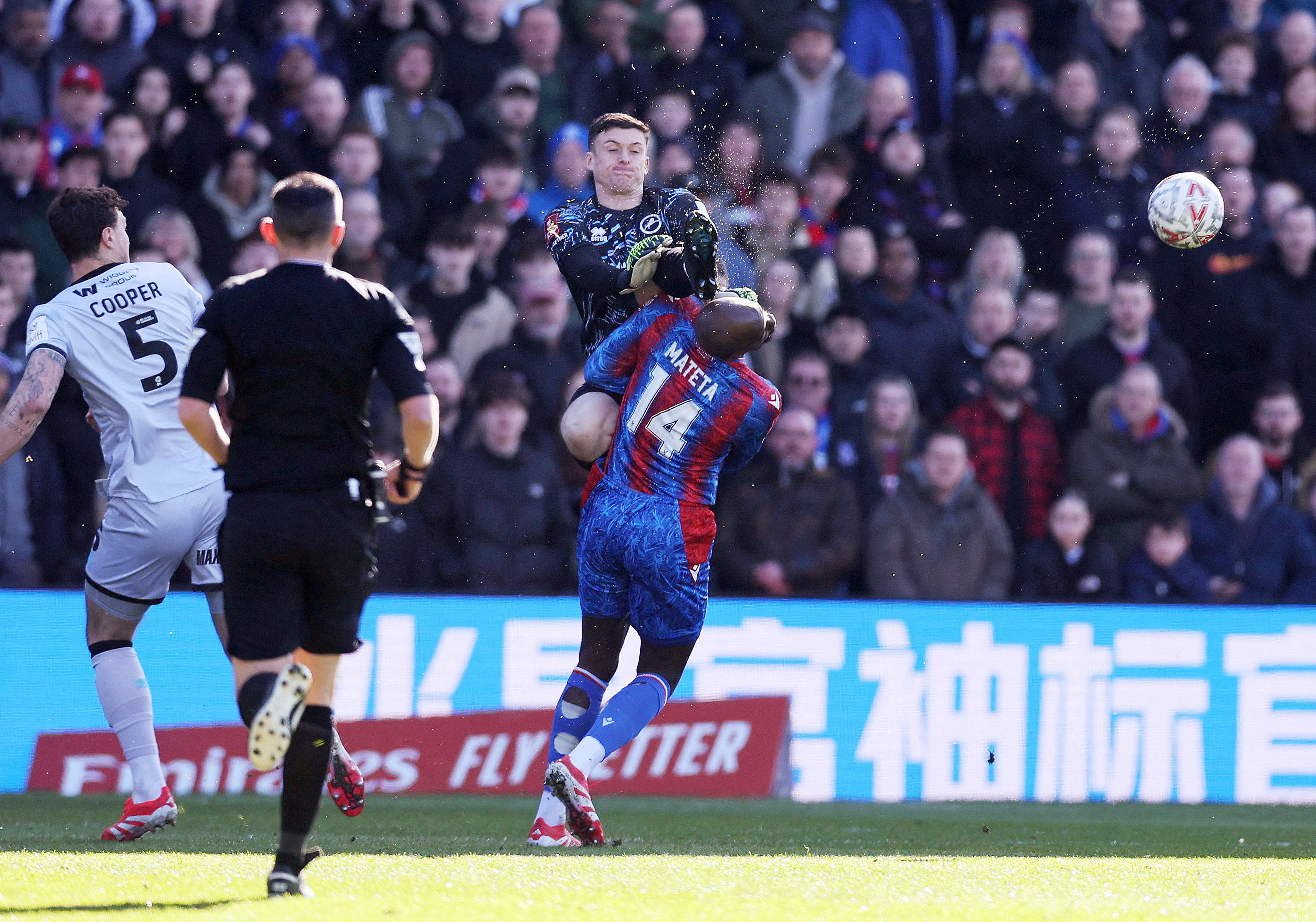 Millwall’s Liam Roberts fouls Crystal Palace’s Jean-Philippe Mateta. The goalkeeper was then sent off in the FA Cup match in London, Britain on March 1, 2025. (Photo by David Klein/Reuters)