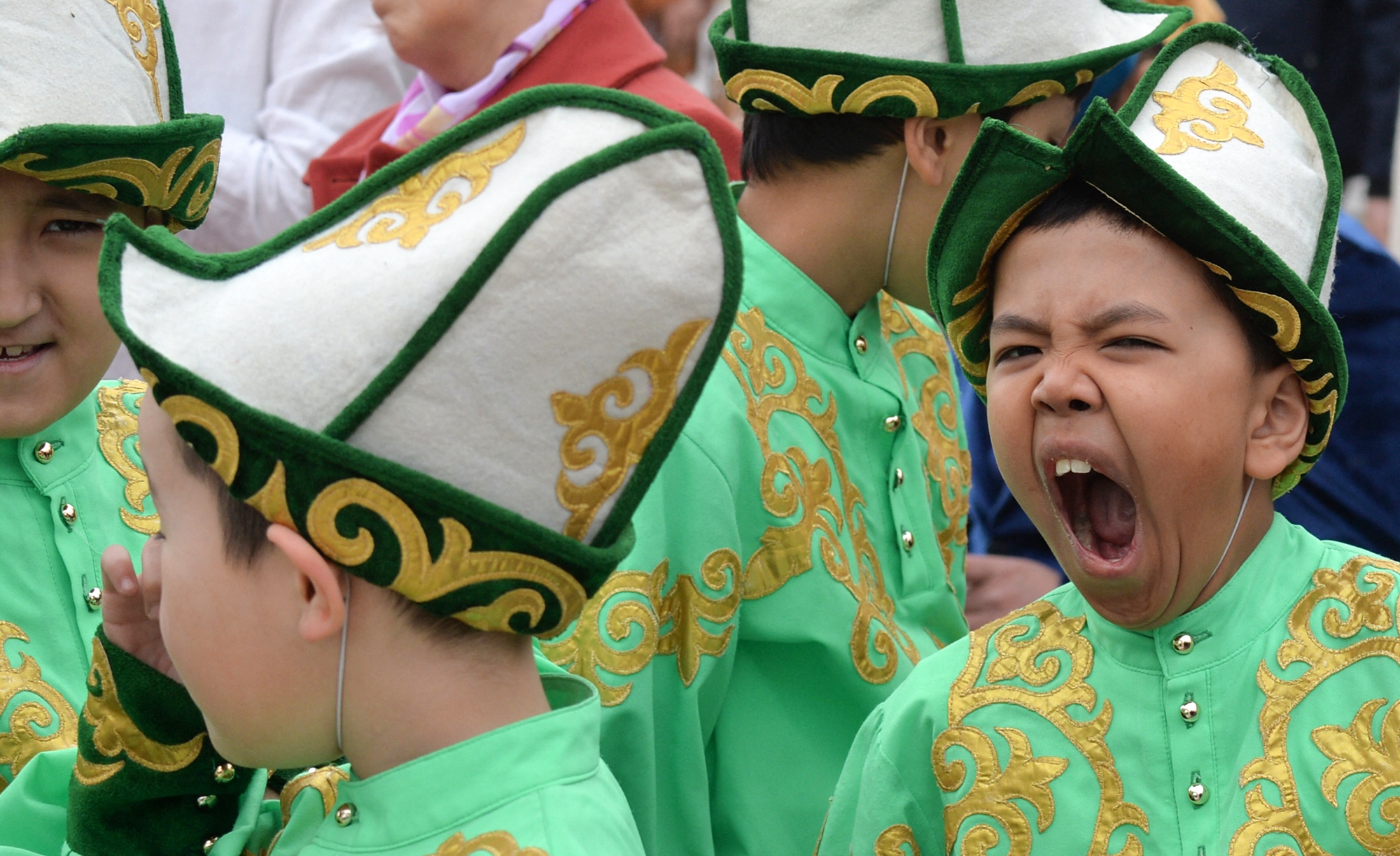 People attend celebrations marking the Day of the Kyrgyz national “Ak-kalpak” hat at the central Ala-Too Square in Bishkek on March 4, 2021. (Photo by Vyacheslav Oseledko/AFP Photo)