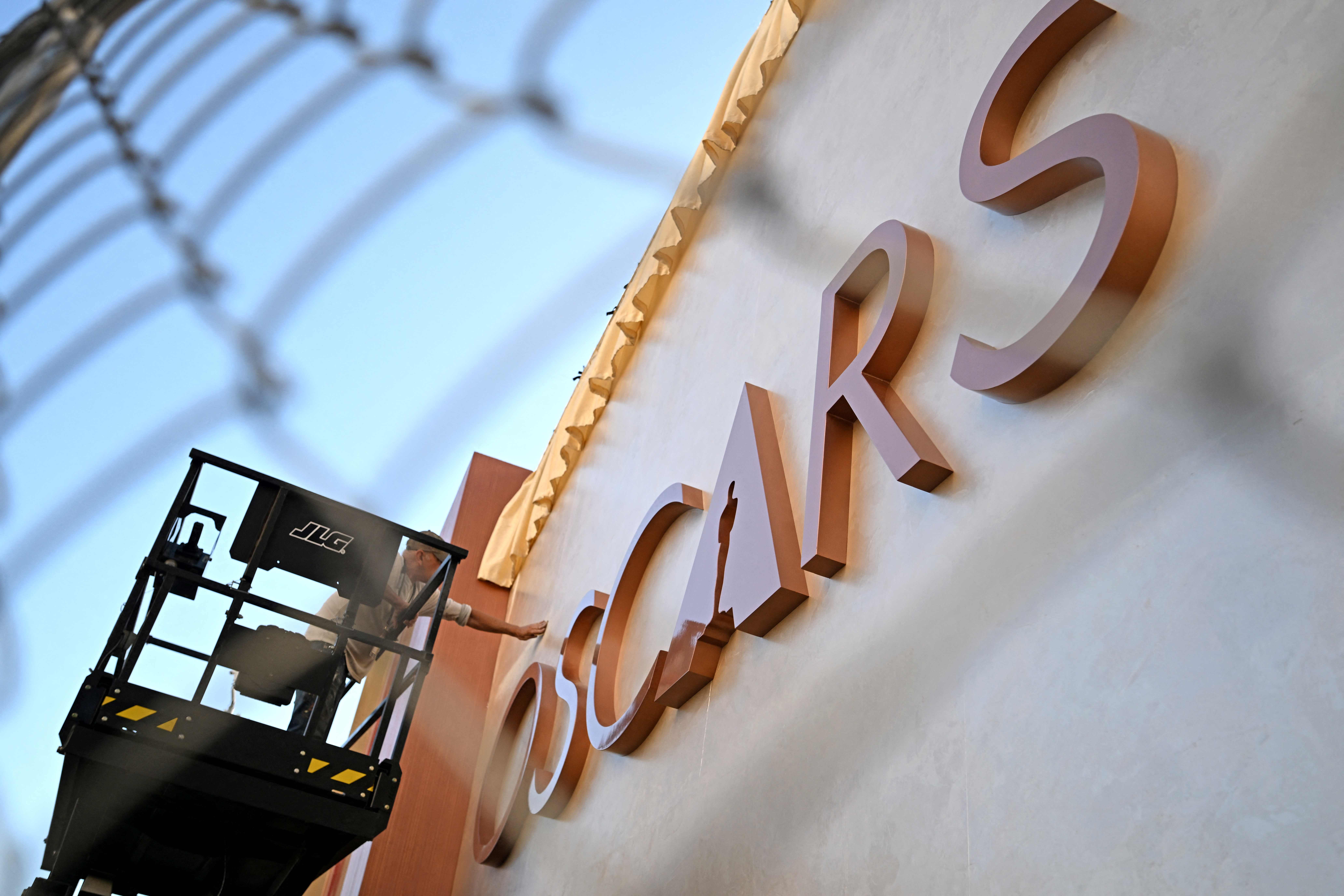 Workers prepare the red carpet area for the 97th Annual Academy Awards at the Dolby Theatre in Hollywood, California on February 28, 2025. (Photo by Robyn Beck/AFP Photo)