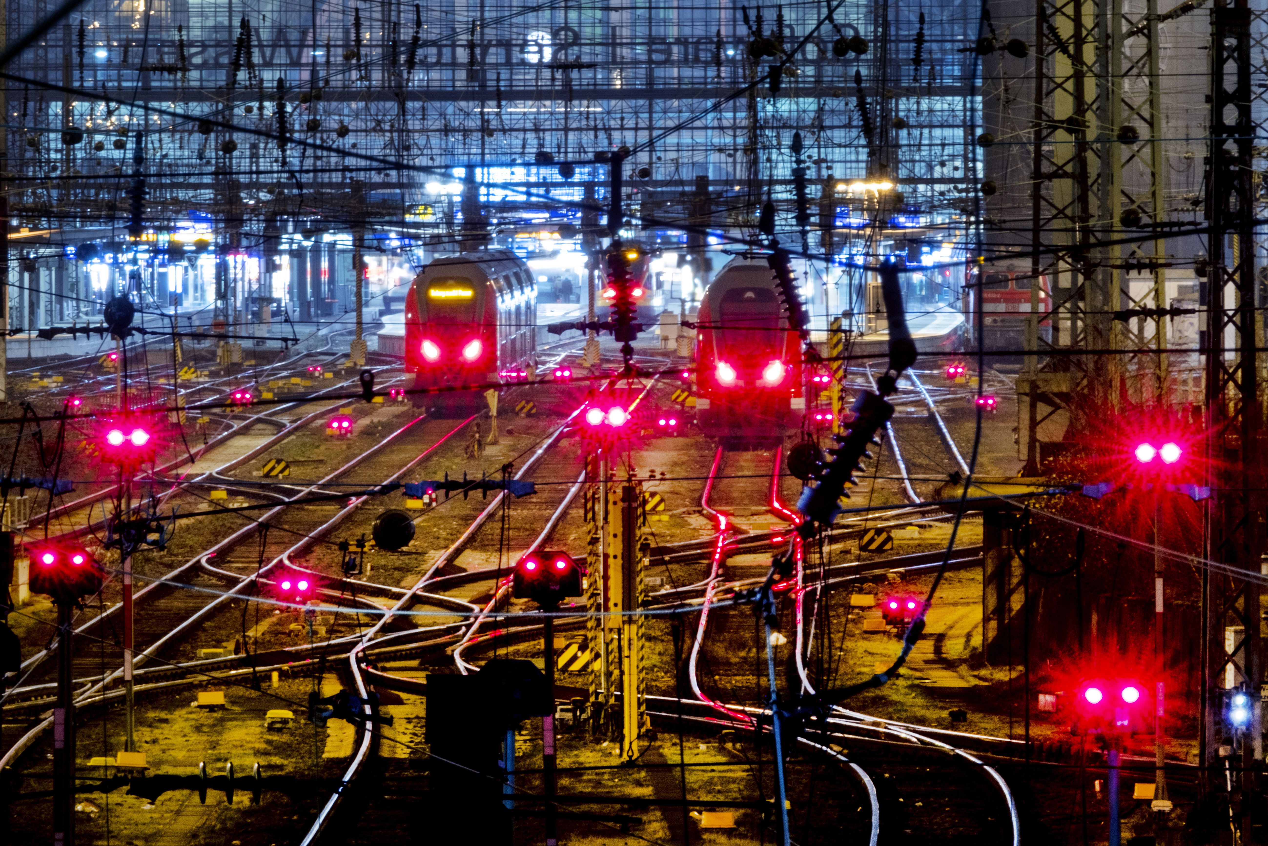 Trains are parked outside the central train station in Frankfurt, Germany, Wednesday, January 10, 2024, as the German Train Drivers' Union (GDL) started a strike on Wednesday to Friday in a dispute with the main national railway operator over working hours and pay. (Photo by Michael Probst/AP Photo)