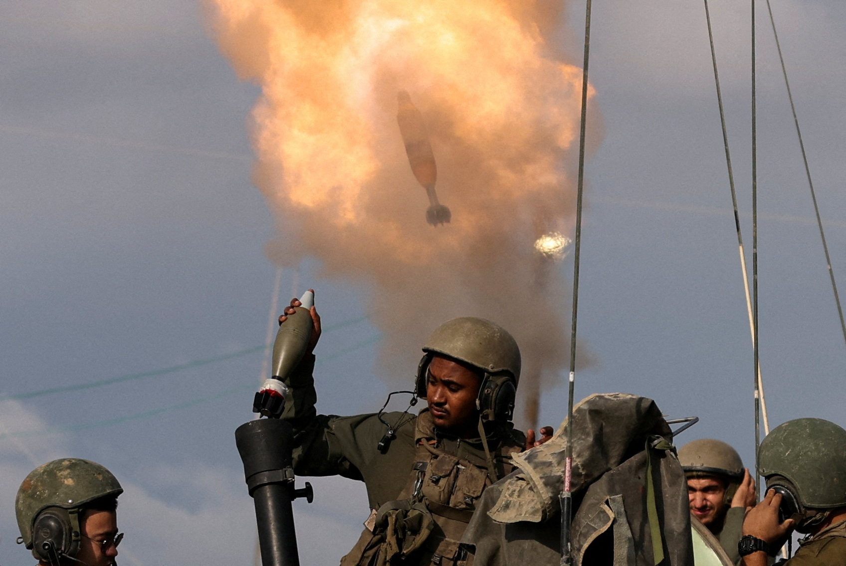 Israeli soldiers fire mortar shells near Israel's border with Gaza in southern Israel on January 3, 2024. (Photo by Violeta Santos Moura/Reuters)