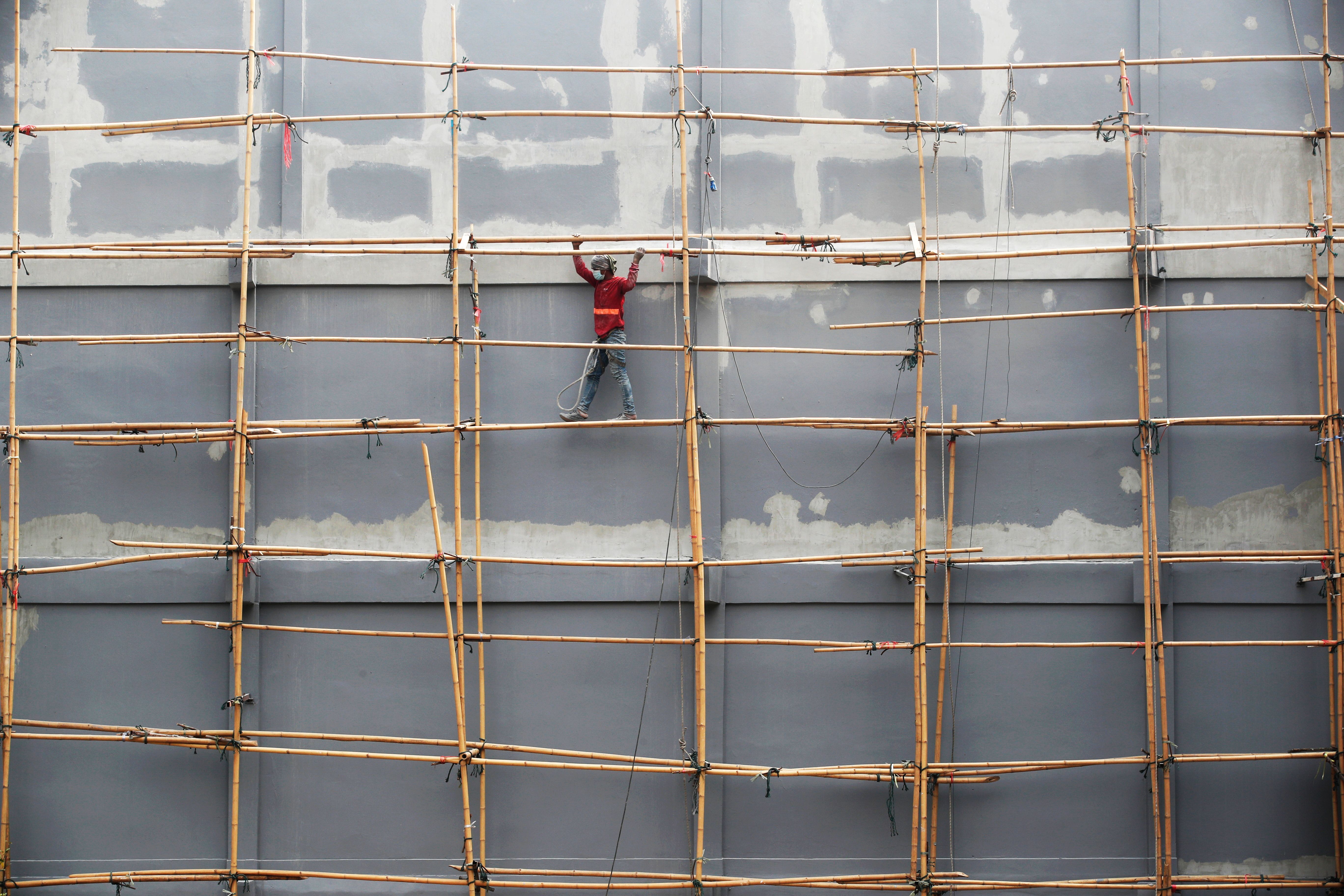 A worker walks on a scafolding of a building construction site in Bangkok, Thailand, 19 February 2025. Thailand's gross domestic product (GDP) for 2025 is projected to grow between 2.3 percent and 3.3 percent, with a median forecast of 2.8 percent, driven mainly by private consumption, investment, tourism, government spending, and exports, according to the National Economic and Social Development Council (NESDC). (Photo by Rungroj Yongrit/EPA/EFE)