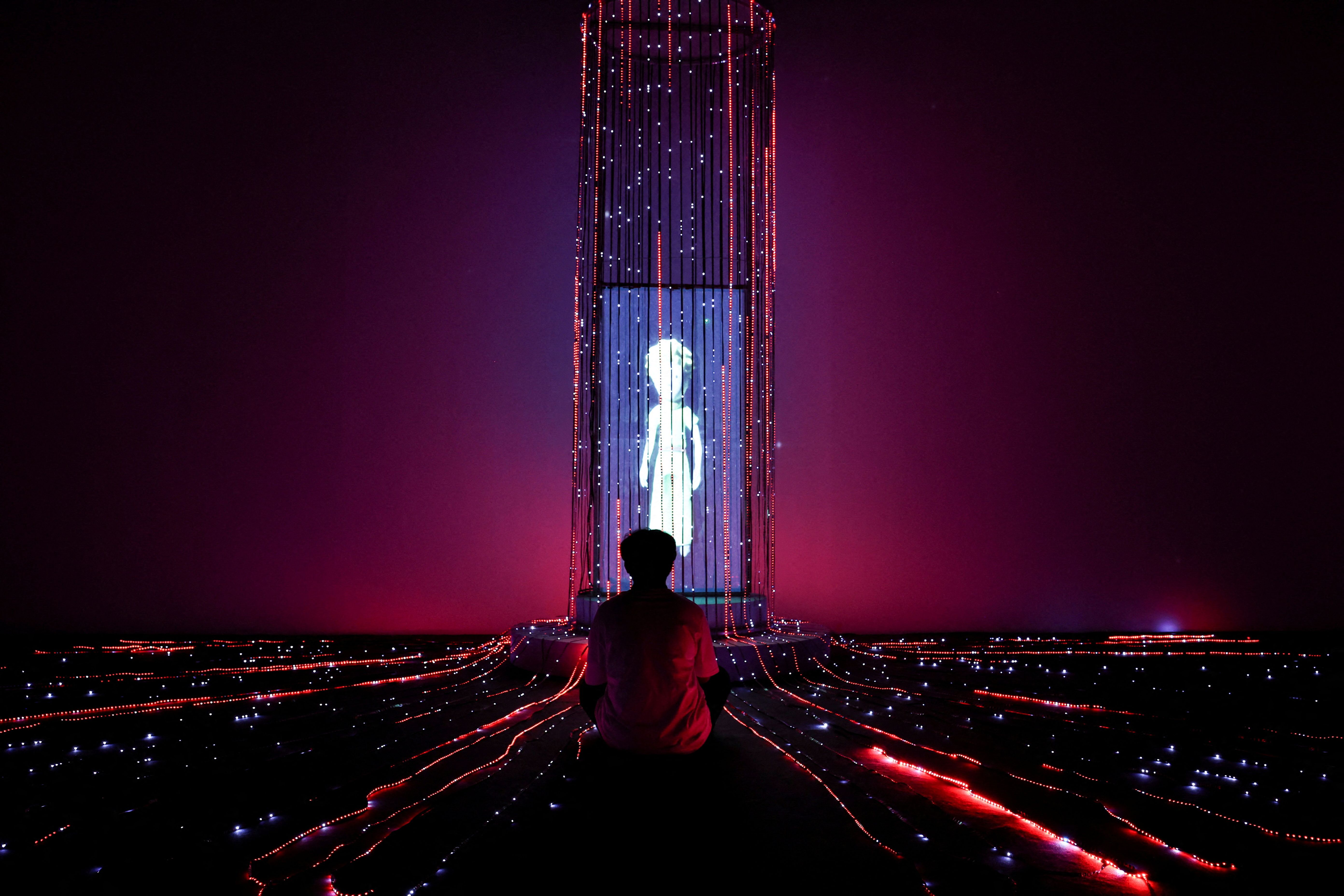 A man sits as he attends The Little Prince Universe – An Immersive Journey, a show of mixed digital interactive experiences and installations, based on Antoine de Saint-Exupery's novella The Little Prince, in Bangkok, Thailand on February 28, 2025. (Photo by Chalinee Thirasupa/Reuters)