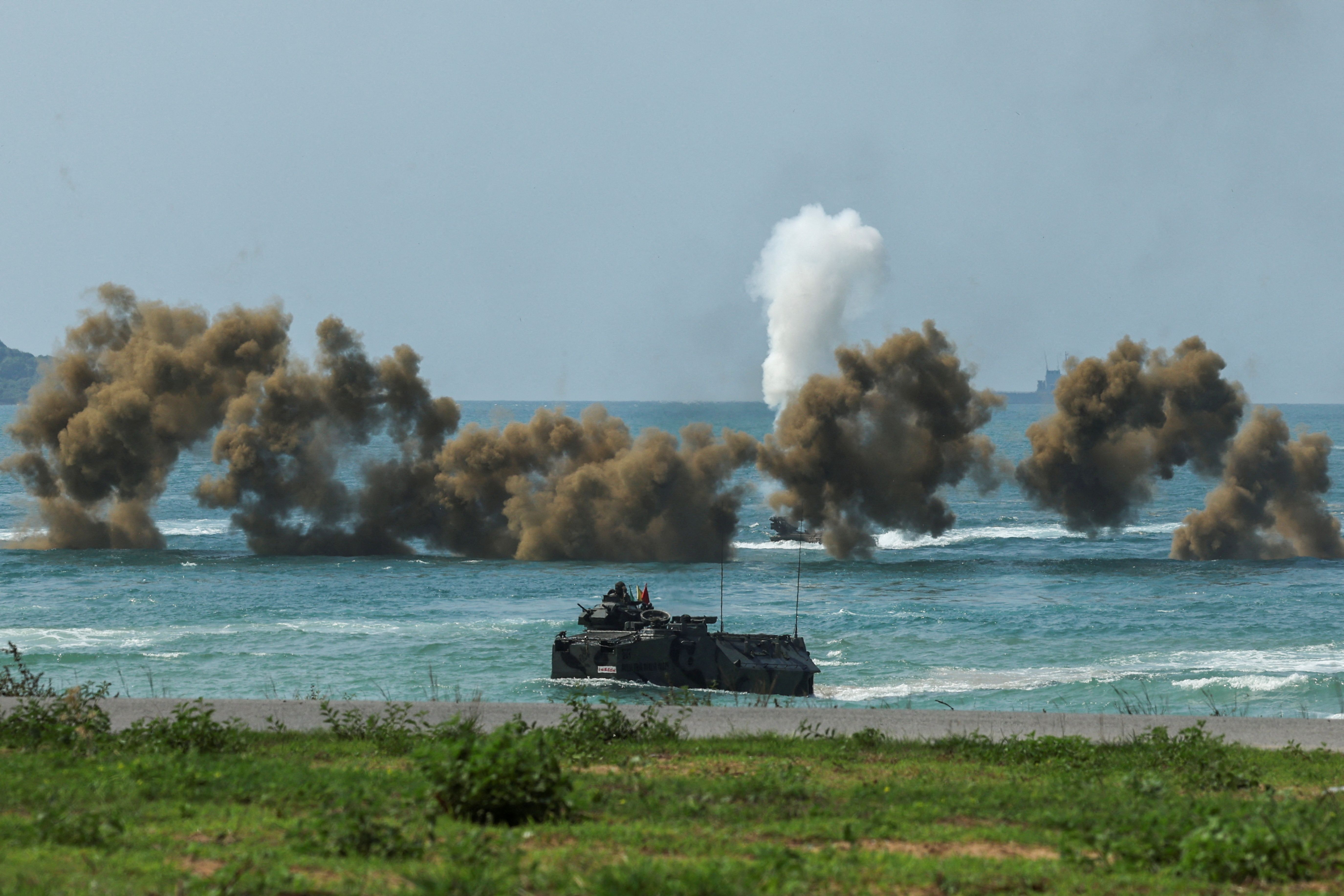 Smoke rises from an amphibious assault vehicles (AAV) participating in an amphibious assault exercise as part of the “Cobra Gold 2025” (CG25) joint military exercise at a military base in Chonburi province, Thailand, on March 3, 2025. (Photo by Chalinee Thirasupa/Reuters)