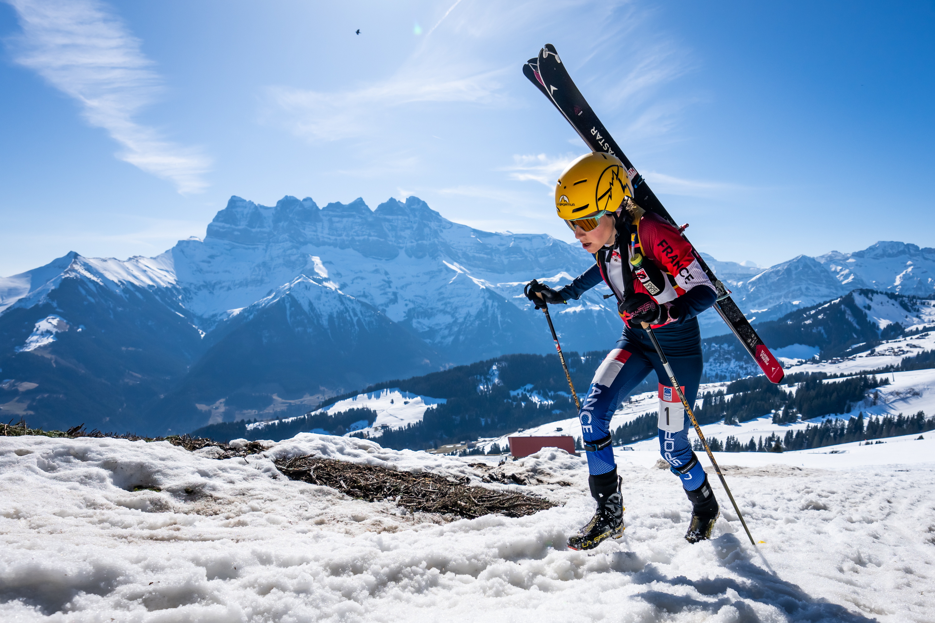 Axelle Mollaret of France competes in the Women's Individual race at the ISMF Ski Mountaineering World Championships, in Morgins, Switzerland, 07 March 2025. (Photo by Maxime Schmid/EPA)