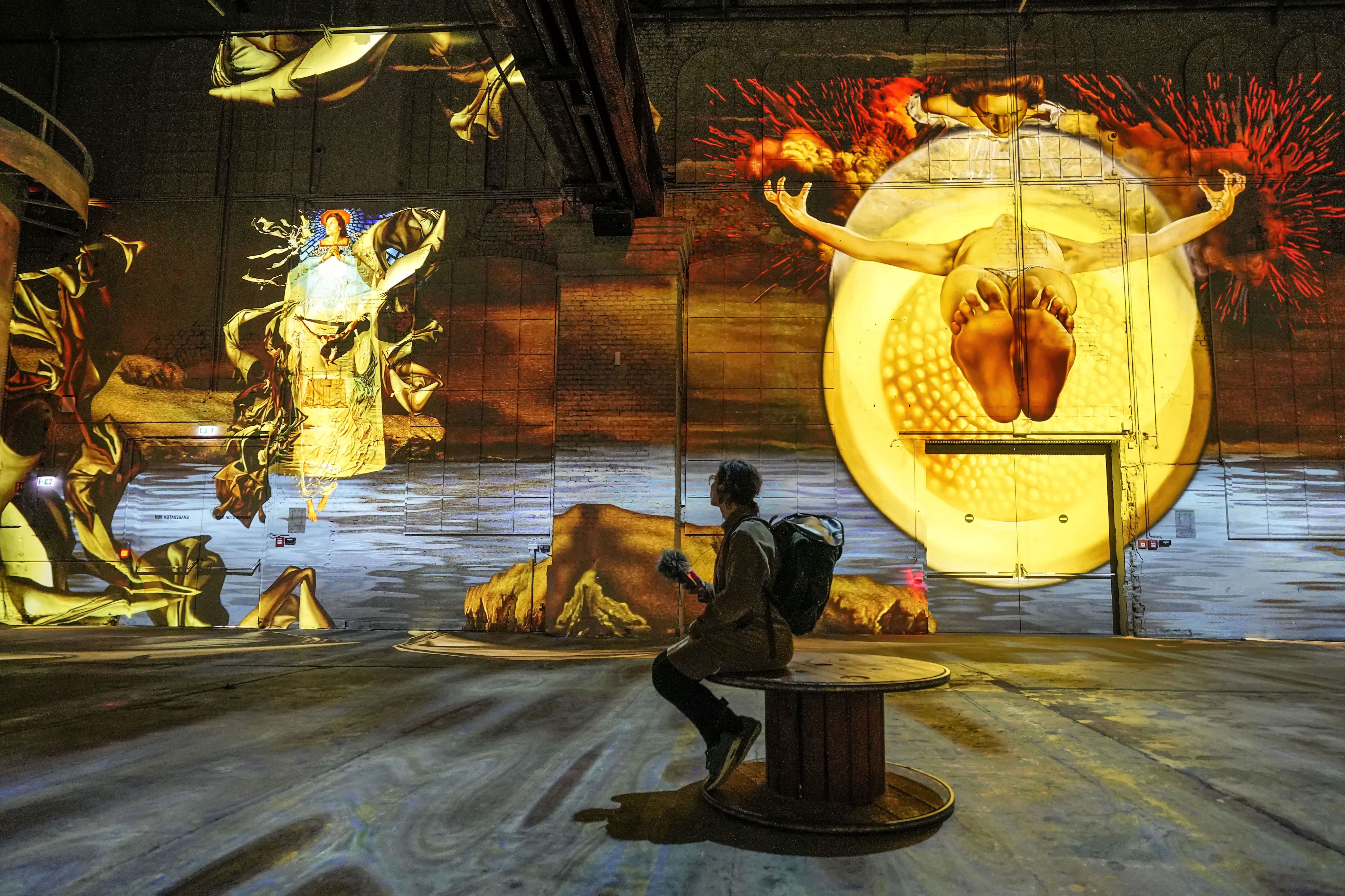 Visitors watch digital multimedia artworks projected on the walls of a former steelworks featuring Spanish surrealist artist Salvador Dali at the Phoenix des Lumieres, located in a former puddling and rolling mill, in Dortmund, Germany, Thursday, January 25, 2024. (Photo by Martin Meissner/AP Photo)