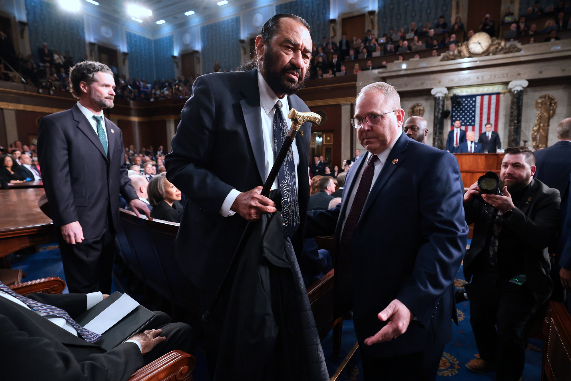 U.S. Rep. Al Green (D-TX) is removed from the chamber as President Donald Trump addresses a joint session of Congress at the U.S. Capitol on March 04, 2025 in Washington, DC. President Trump was expected to address Congress on his early achievements of his presidency and his upcoming legislative agenda. (Photo by Win McNamee/Getty Images)