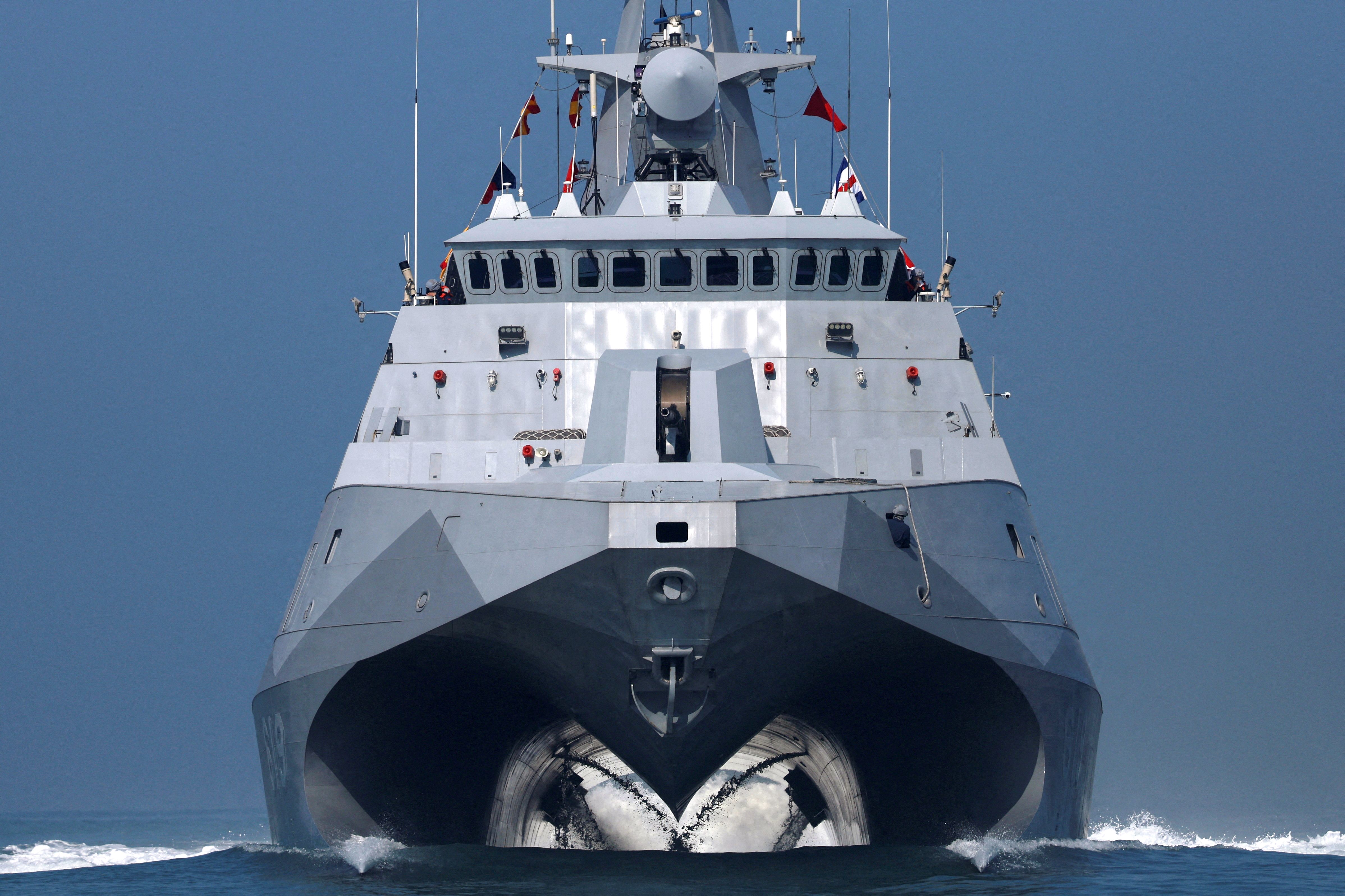 Members of Taiwan's Navy onboard a Tuo Chiang-class corvette participate in a drill as part of a demonstration for the media, to show combat readiness ahead of the Lunar New Year holidays, on the waters near a military base in Kaohsiung, Taiwan on January 31, 2024. (Photo by Carlos Garcia Rawlins/Reuters)