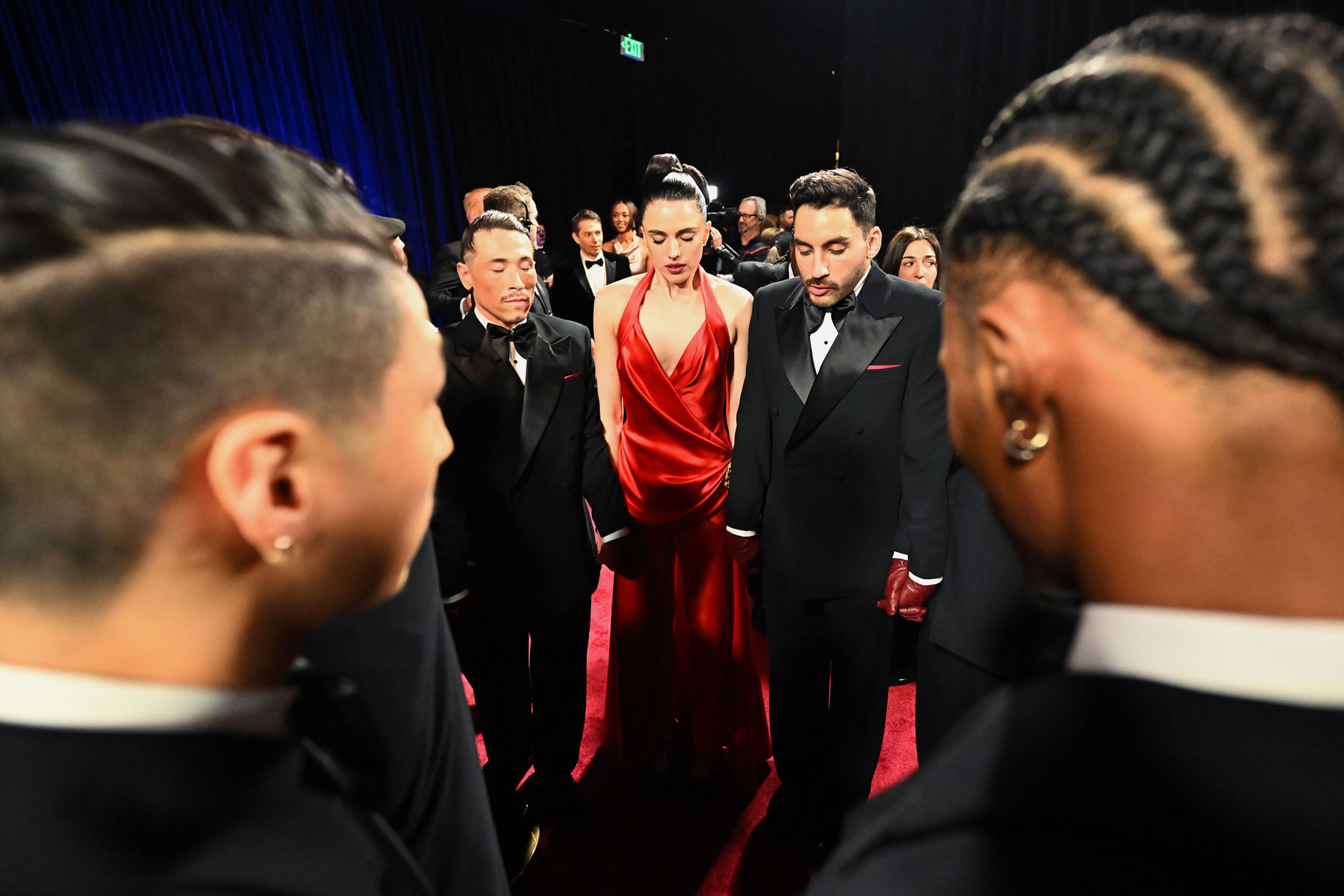 In this handout photo provided by The Academy, Margaret Qualley (C) and dancers are seen backstage during the 97th Annual Oscars at Dolby Theatre on March 02, 2025 in Hollywood, California. (Photo by Richard Harbaugh/The Academy via Getty Images)