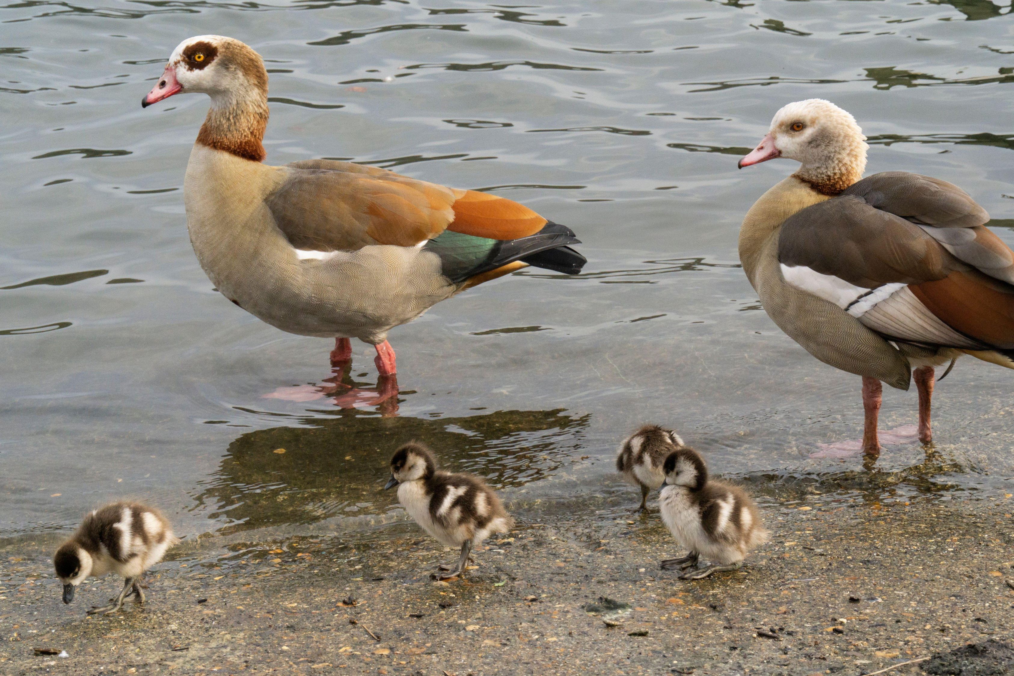 A pair of Egyptian geese with their goslings on the river bank in Henley-on-Thames, UK in the last decade of February 2025. (Photo by Anna Watson/Alamy Live News)