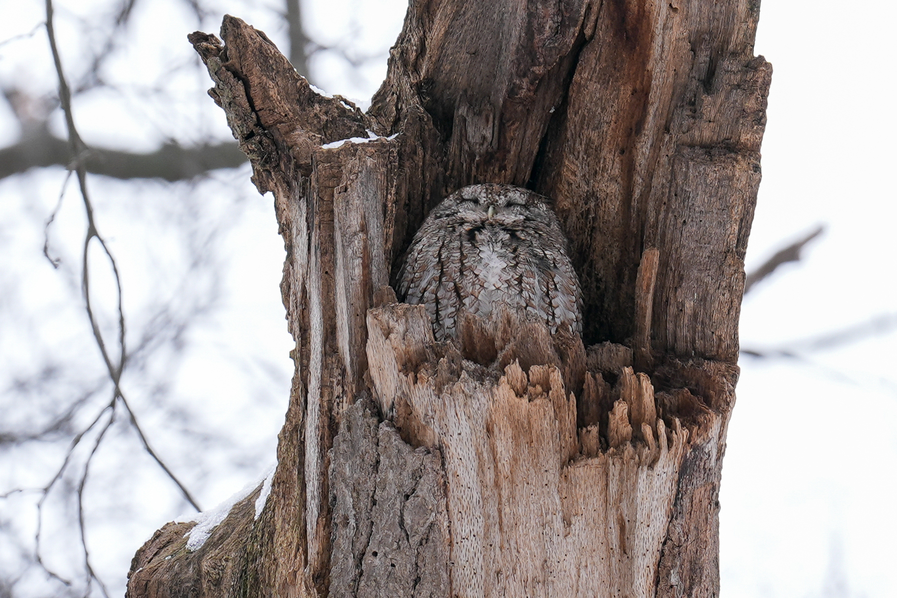 An Eastern screech-owl perches in tree hollow at High Park in Toronto, Canada on February 6, 2025. (Photo by Mert Alper Dervis/Anadolu via Getty Images)