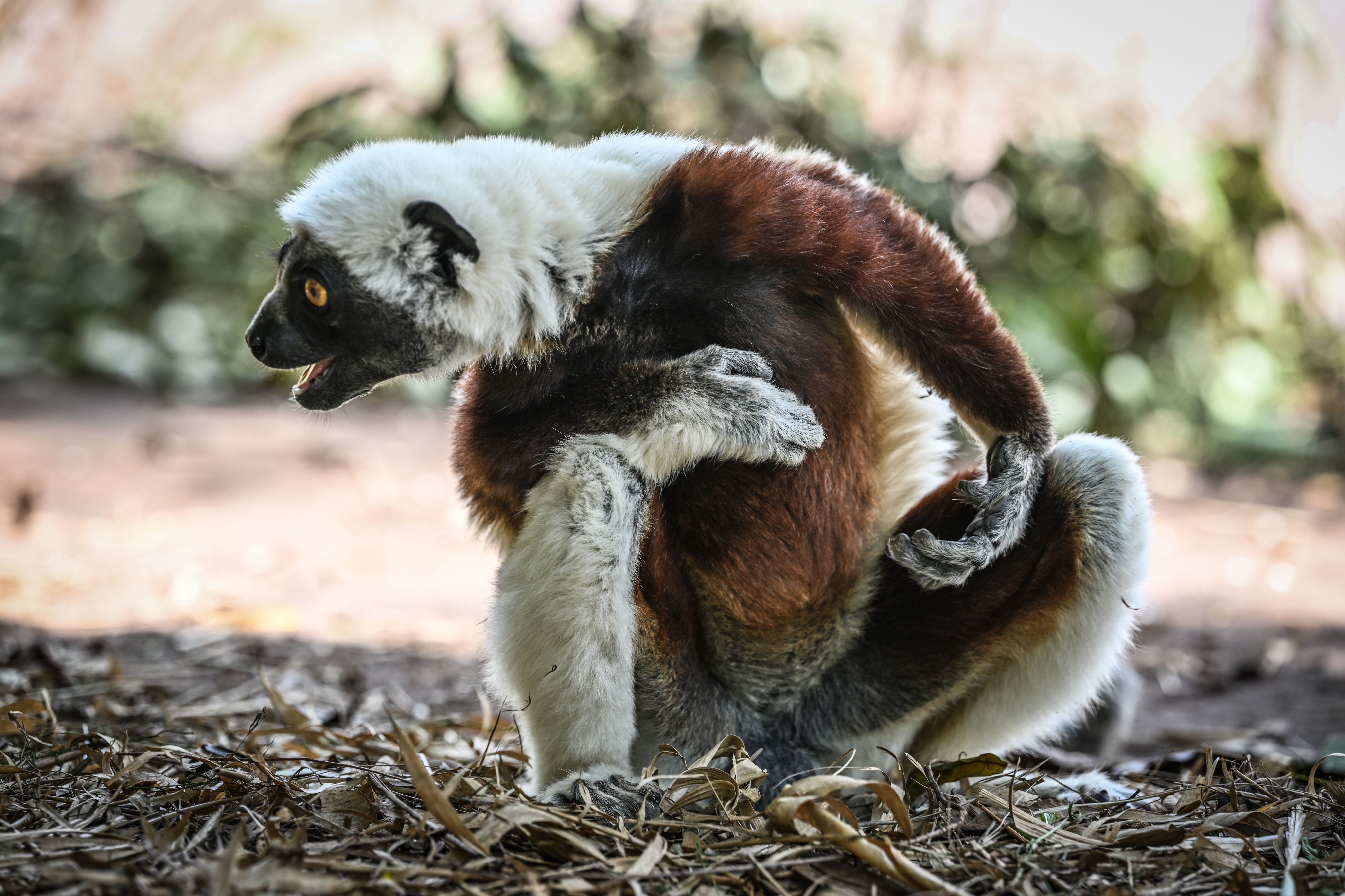 A lemur is seen at Lemurs Park, located 32 km southwest of Antananarivo, Madagascar on February 26, 2025. Madagascar, situated off the eastern coast of Africa and west of the Indian Ocean, is home to 112 distinct lemur species. The 'Park of Lemurs' is among the largest natural habitats for these unique primates. Spanning 5 hectares along the Katsaoka River, the park hosts nine species, including Eulemur mongoz, Lemur catta, Eulemur fulvus fulvus, Varecia variegata variegata, Hapalemur griseus griseus, Eulemur macaque, Sifaka, Crowned Sifaka, and Coquerel's Sifaka. Each year, the park attracts numerous local and international visitors eager to observe these fascinating creatures. (Photo by Cem Genco/Anadolu via Getty Images)