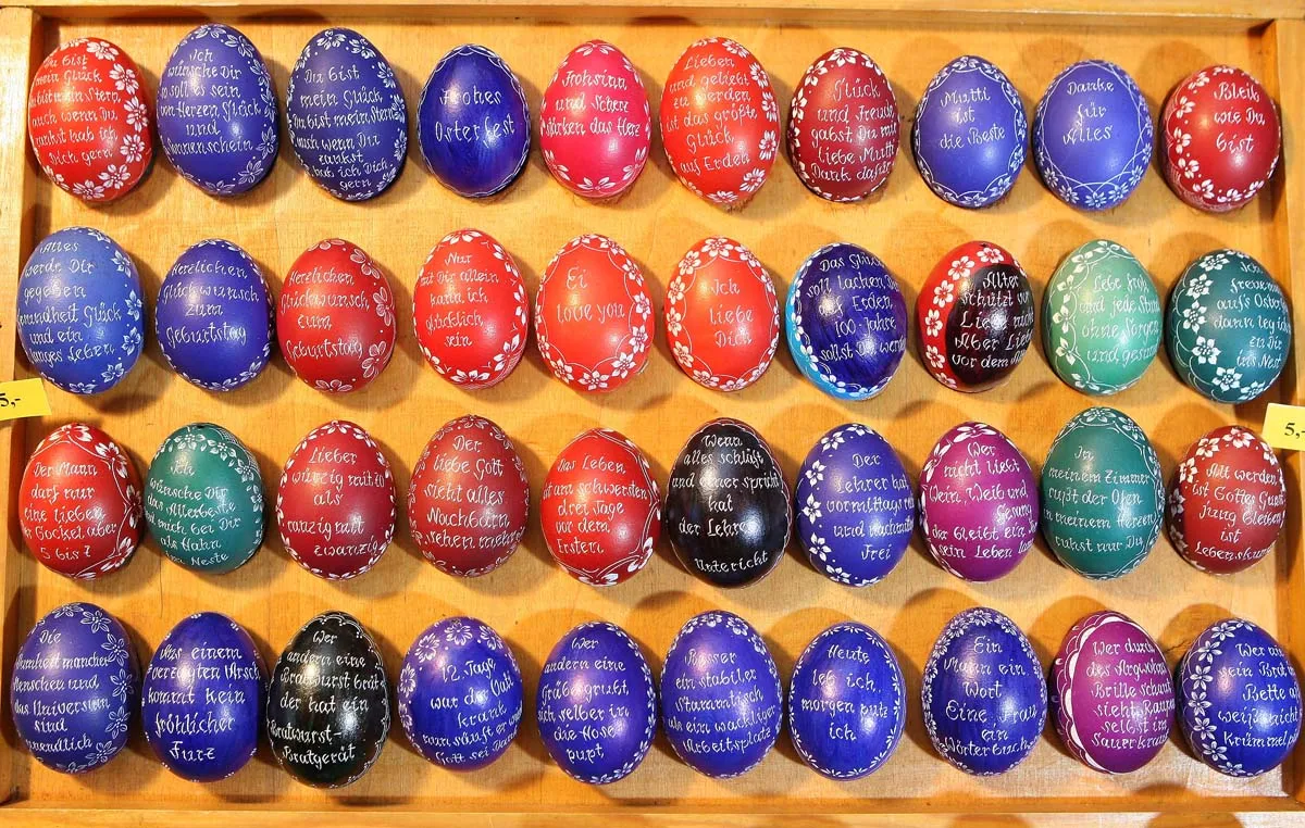 SCHLEIFE, GERMANY - MARCH 16: Painted Easter eggs sit on display for sale at the annual Sorbian Easter market on March 16, 2013 in Schleife, Germany. Easter is a particularly important time of year for Sorbs, a Slavic minority in eastern Germany, and the period includes the tradition of painting Easter eggs that include visual elements intended to ward off evil. Many Sorbs still speak Sorbian, a language closely related to Polish and Czech. (Photo by Adam Berry/Getty Images)