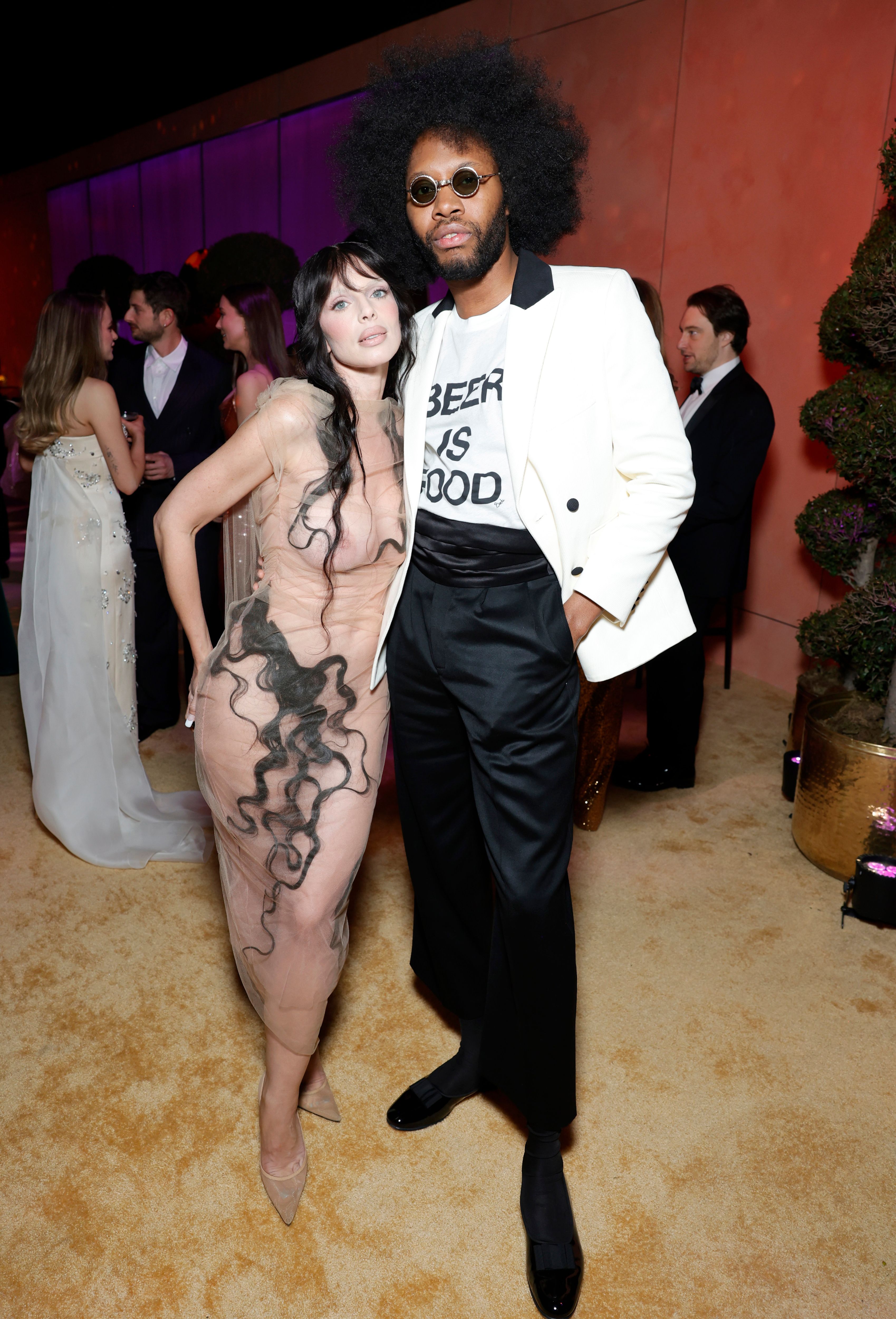 Italian-American actress and model Julia Fox and American playwright and actor Jeremy O. Harris attend the 2025 Vanity Fair Oscar Party Hosted By Radhika Jones at Wallis Annenberg Center for the Performing Arts on March 02, 2025 in Beverly Hills, California. (Photo by Stefanie Keenan/VF25/WireImage for Vanity Fair)