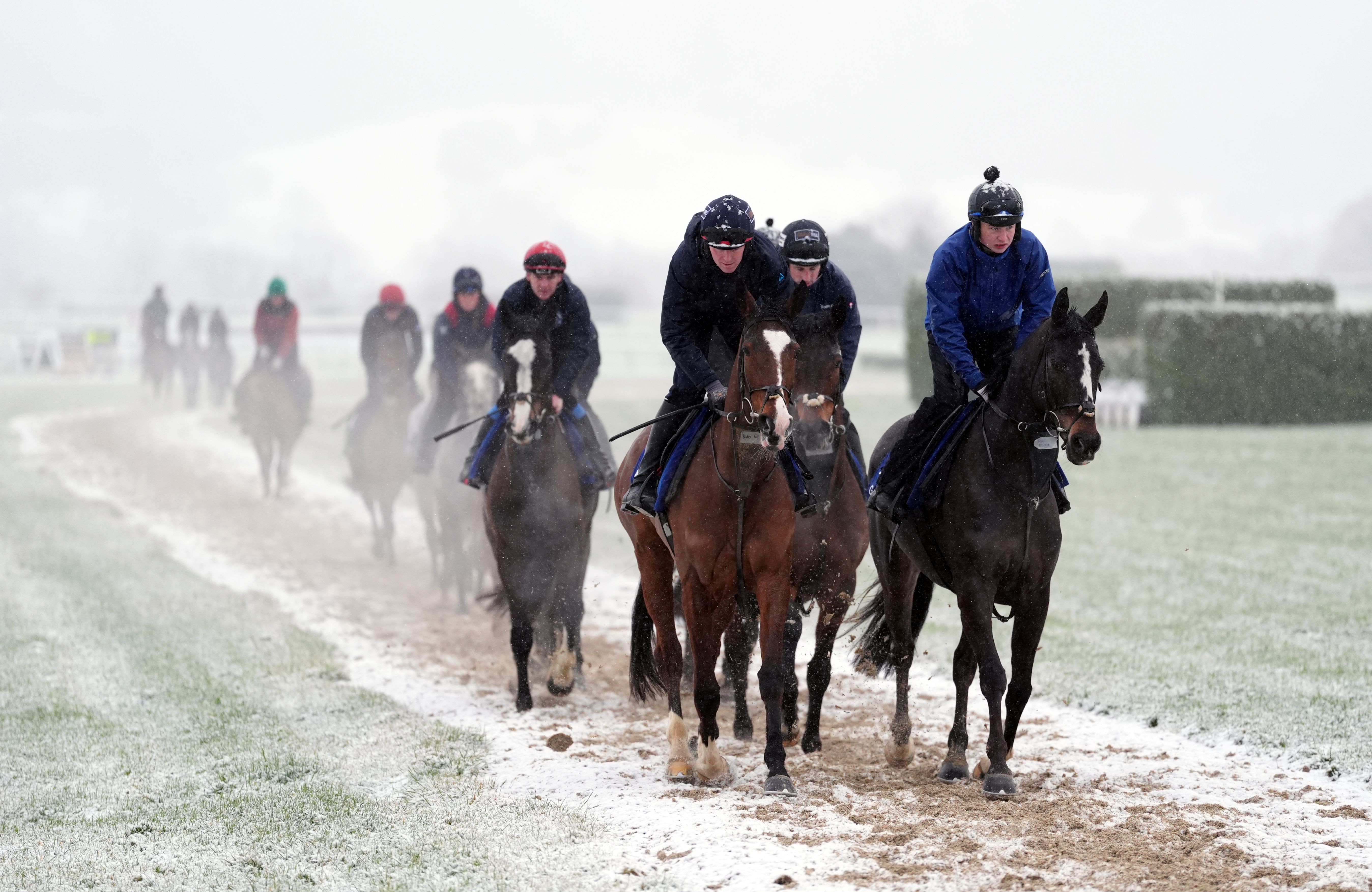 Gavin Cromwell trained horses on the snow covered gallops on day two of the 2025 Cheltenham Festival at Cheltenham Racecourse on Wednesday, March 12, 2025. (Photo by Adam Davy/PA Wire)
