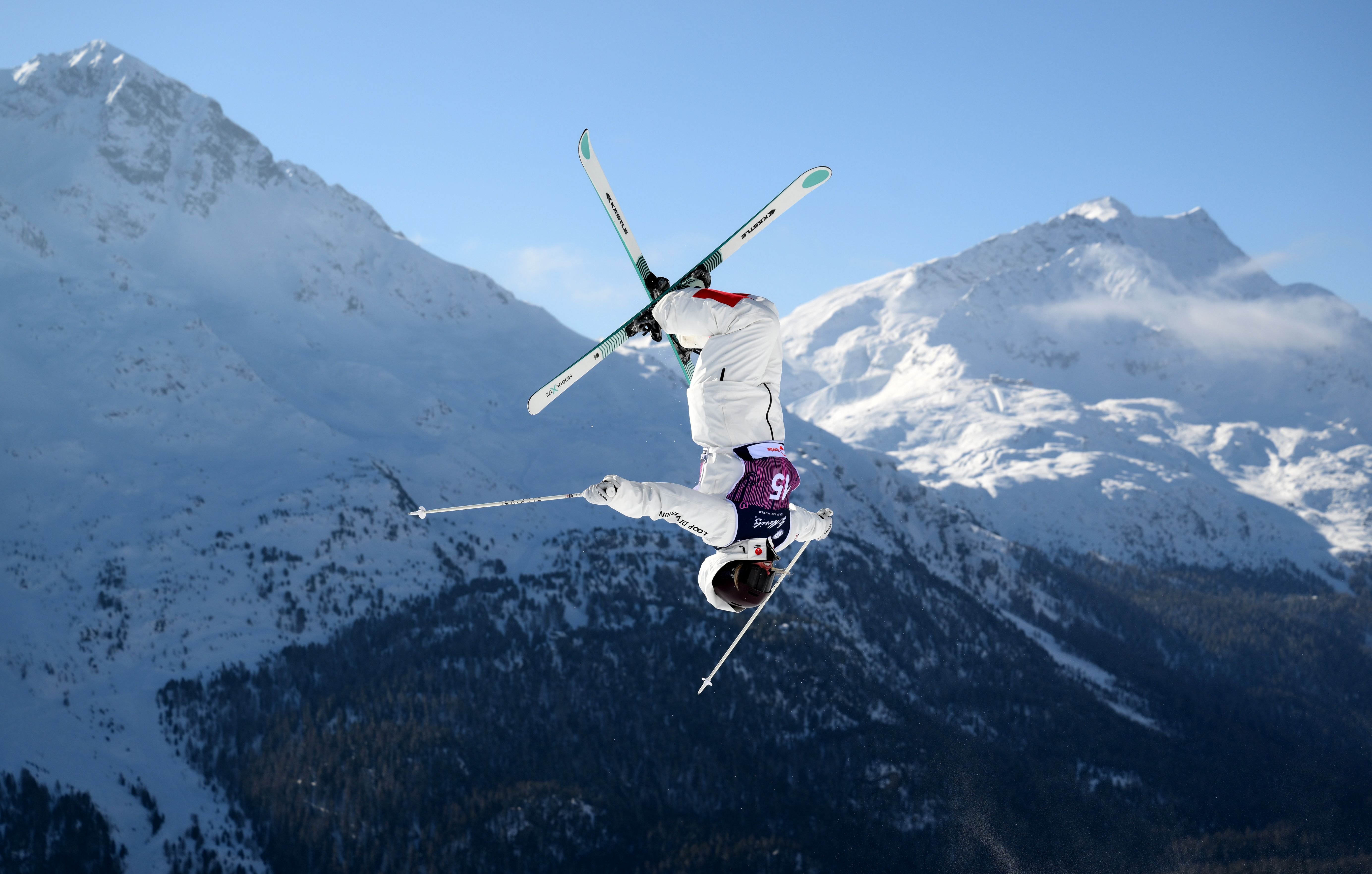 Laurianne Desmarais-Gilbert of Team Canada during the warm up ahead of the Women's Moguls Qualification on March 18, 2025 in Corviglia, St. Moritz, Switzerland. (Photo by David Ramos/Getty Images)