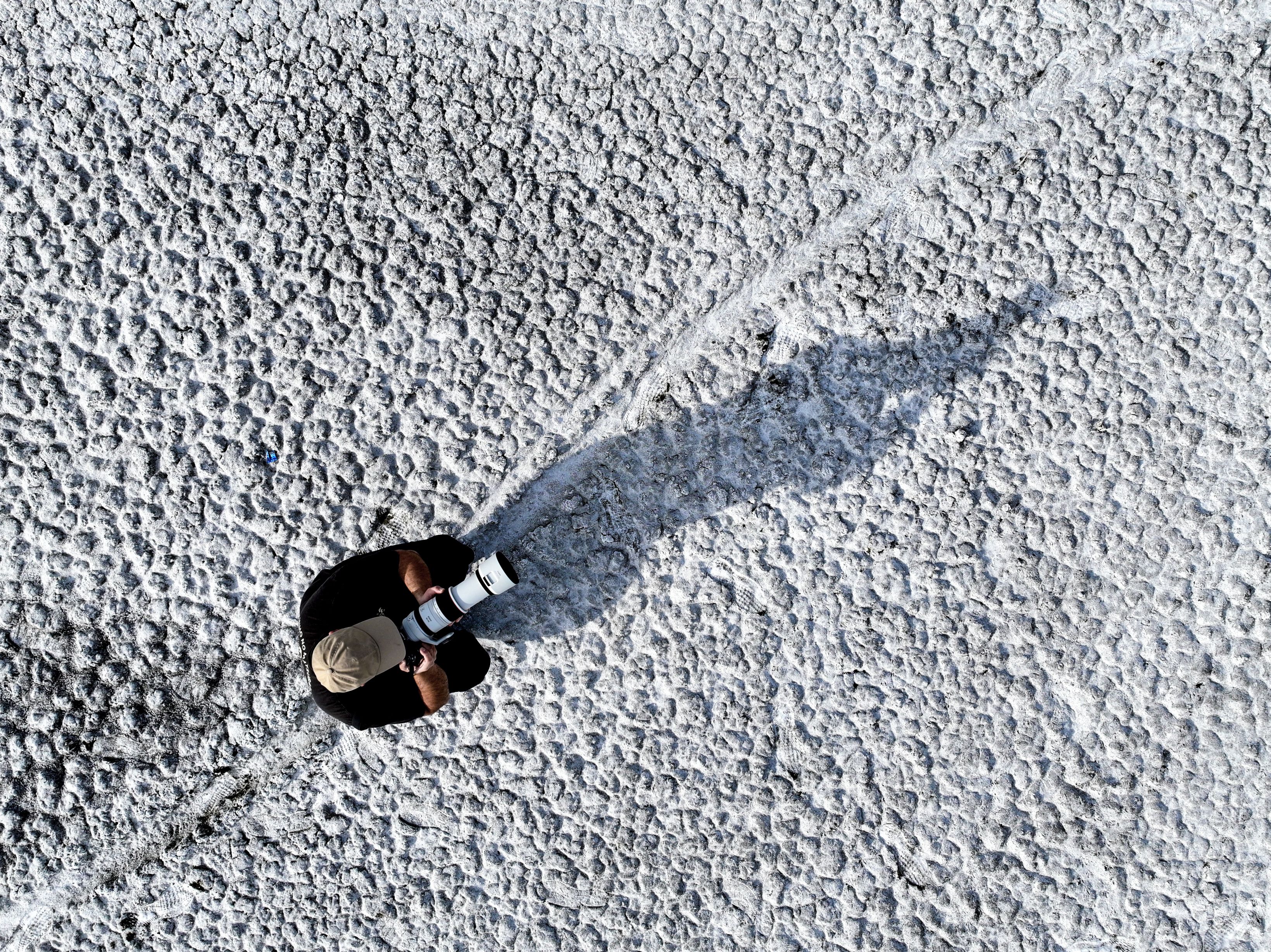 An aerial view of the Lake Duden's texture formed due to drought in Konya, Turkiye on March 9, 2024. The lake, situated 5 kilometers from Kulu district in Konya and known for hosting migratory birds, has experienced a decline in water level. (Photo by Serhat Cetinkaya/Anadolu via Getty Images)