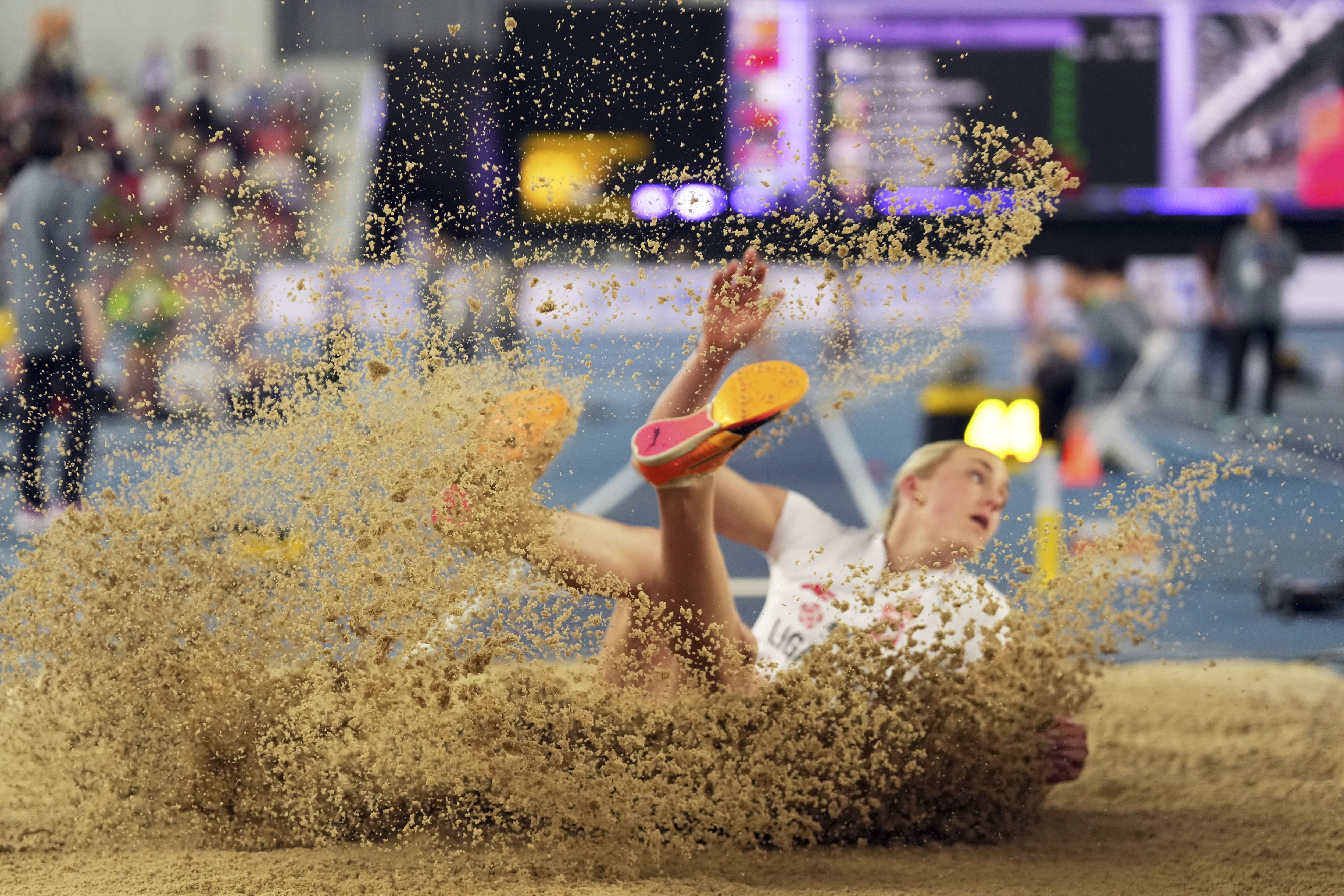 Paulina Ligarska, of Poland, makes an attempt in the pentathlon long jump at the World Athletics Indoor Championships in Nanjing, China, Friday, March 21, 2025. (Photo by Vincent Thian/AP Photo)