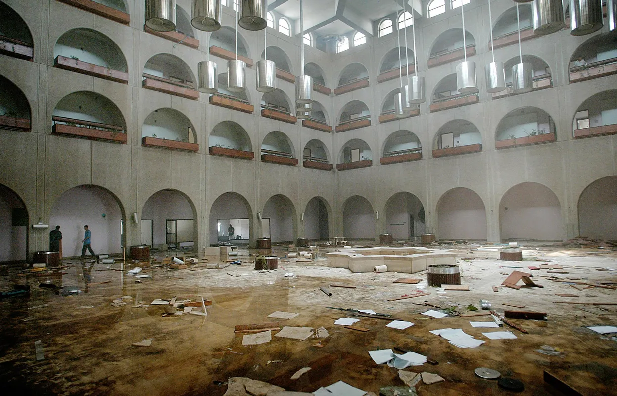 The inside of the Sheraton Hotel, scene of alleged looting, in Basra, southern Iraq, on April 8, 2003. (Photo by Simon Walker/Reuters via The Atlantic)