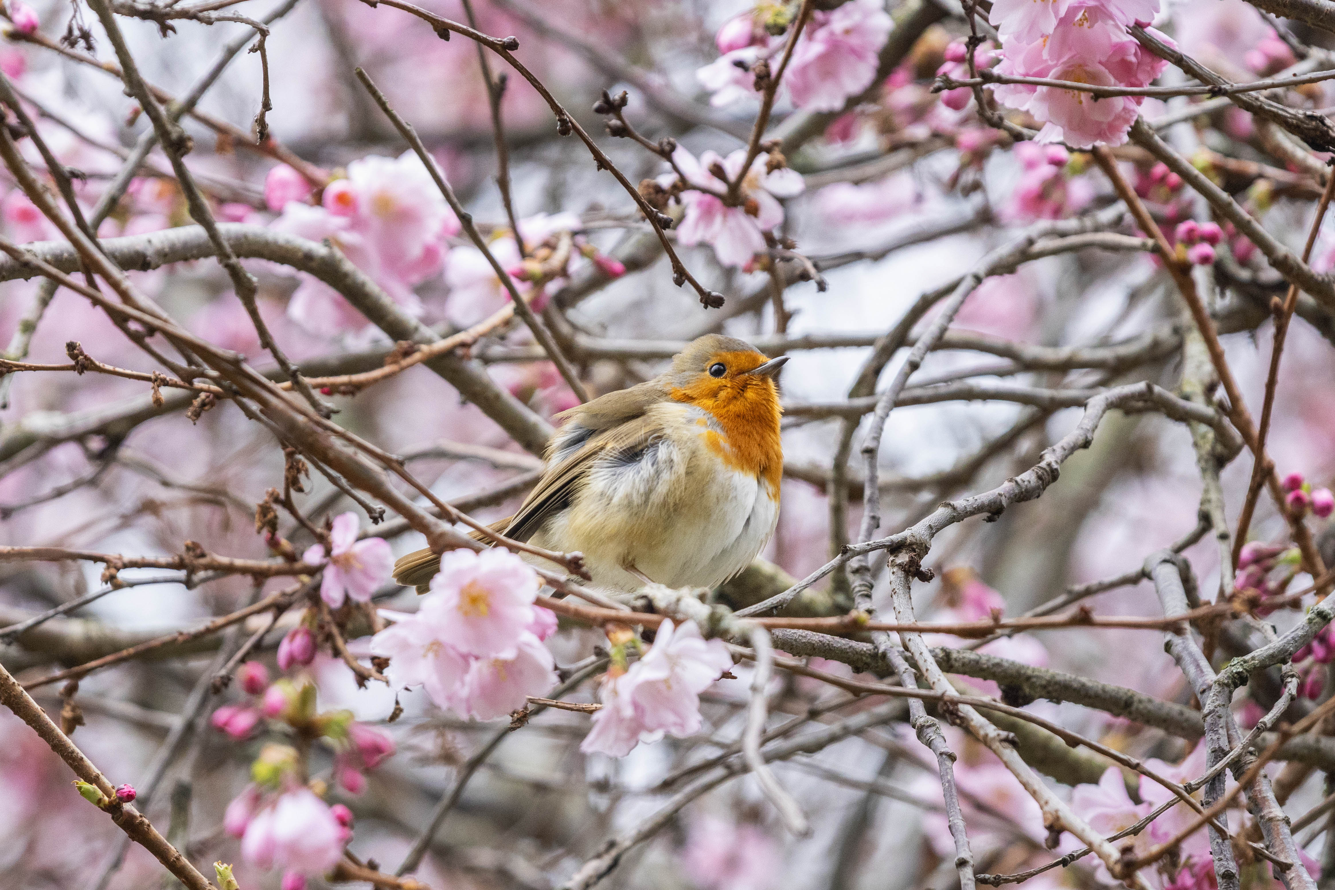 A robin in St James’s Park in London enjoys the springtime blossom on March 15, 2025. (Photo by Jack Hill/Times Media Ltd)