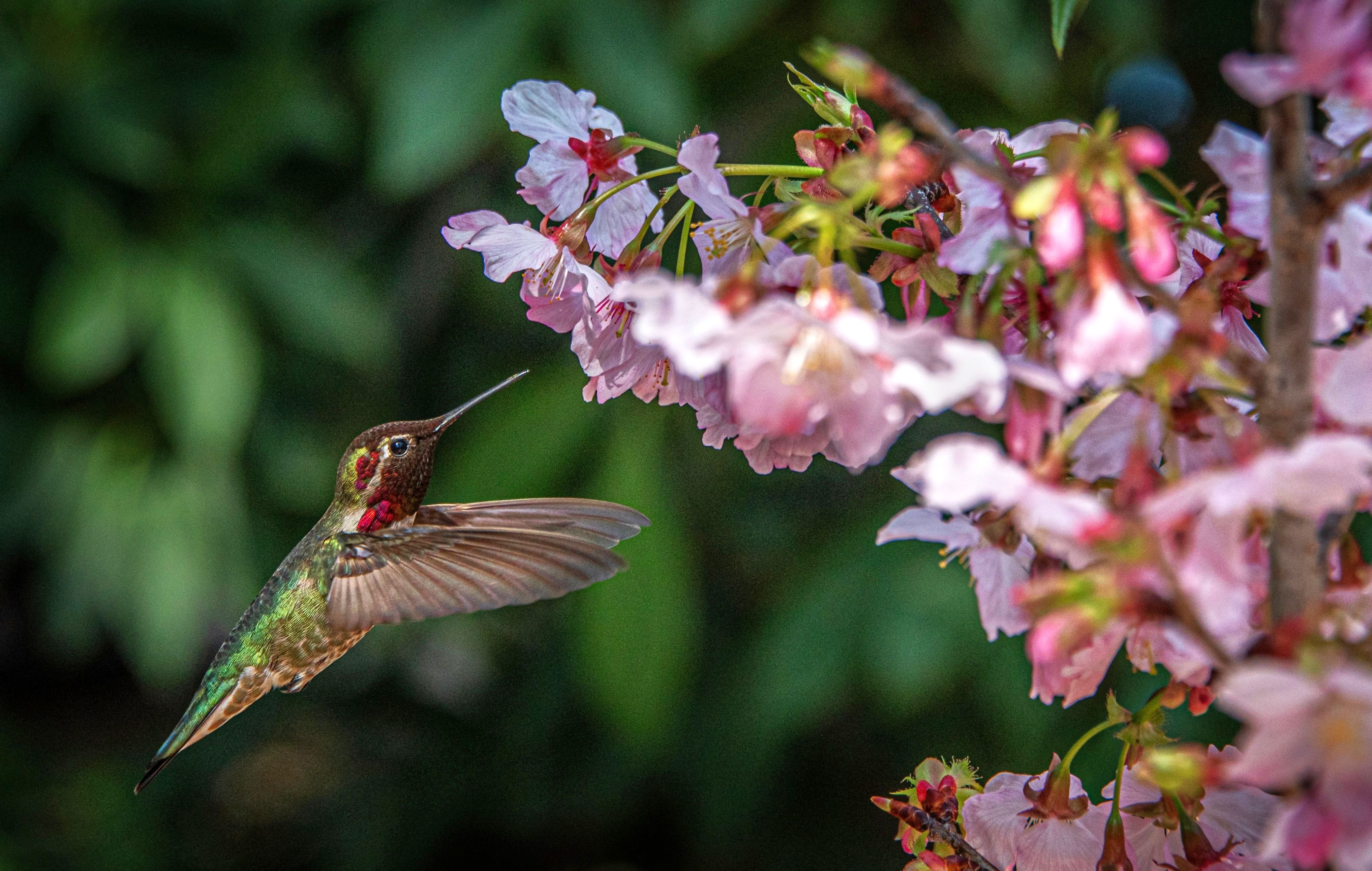 A hummingbird seeks nectar on blooming cherry blossoms at the Huntington Library and Gardens in California on March 15, 2025. (Photo by Bruce Chambers/Zuma Press Wire/Rex Features/Shutterstock)